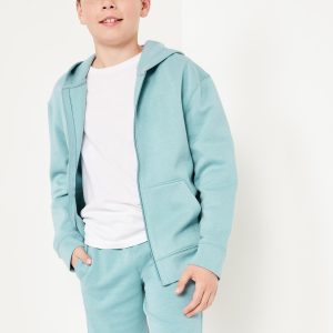 Fleece Jogger Shorts for Boys (At Knee): elasticized waistband, interior drawstring, on-seam welt pockets, #685948