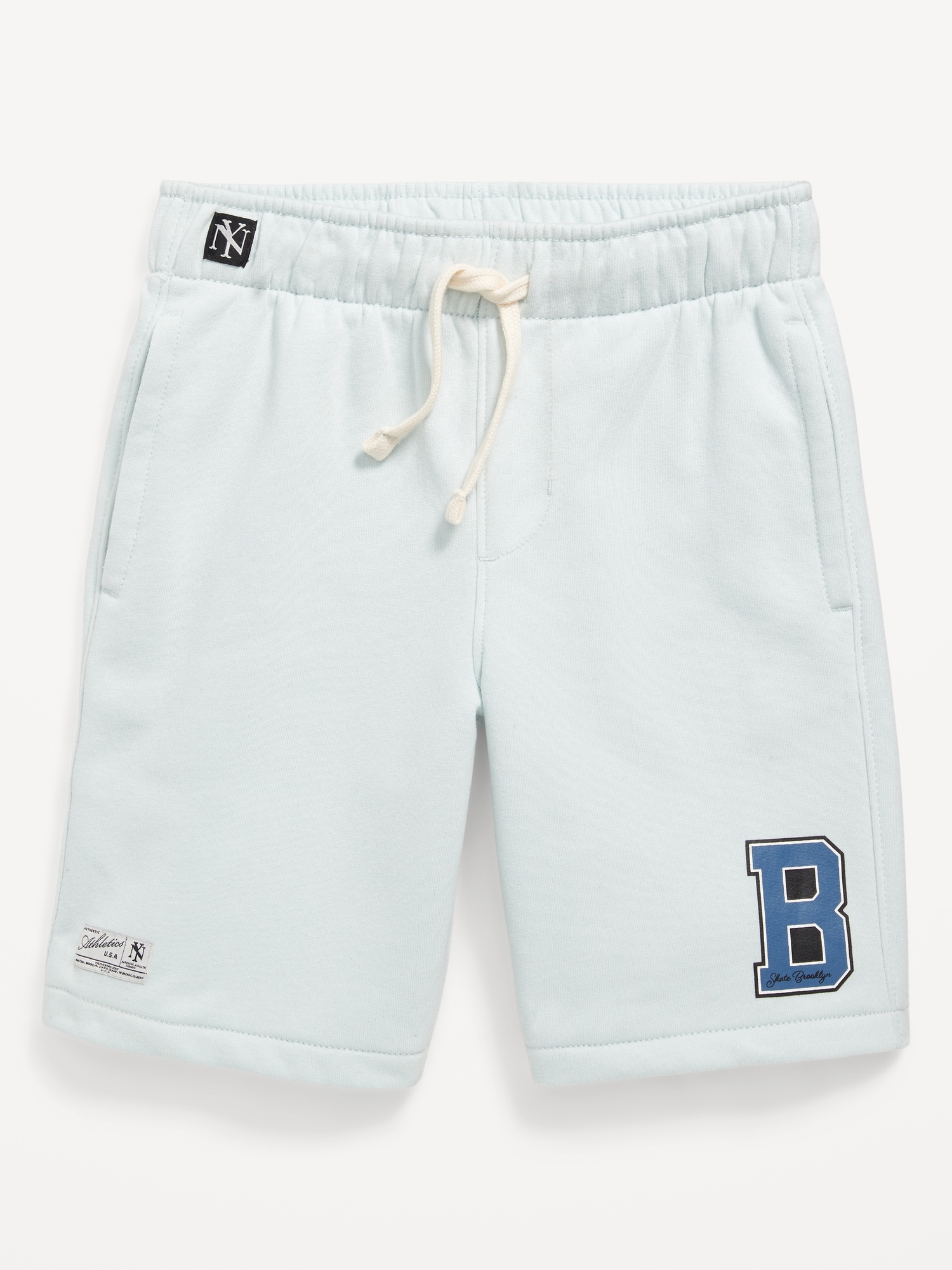 Fleece Jogger Shorts for Boys (At Knee): elasticized waistband, interior drawstring, on-seam welt pockets, #685948
