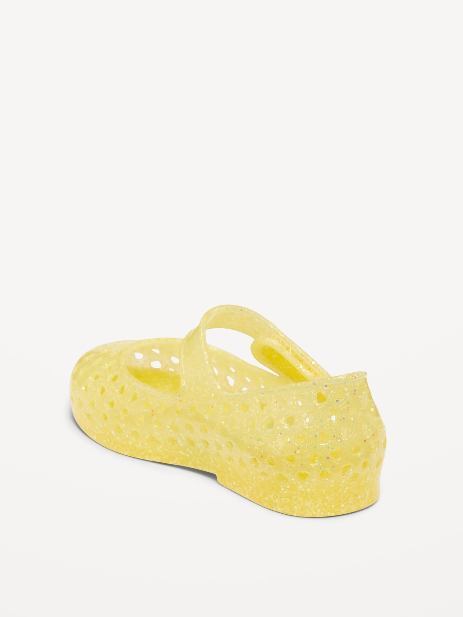 Fruity Scented Jelly Mary-Jane Flats for Toddler Girls: secure-close mary-jane strap across foot, cut-out pattern, firm foot bed, textured outsole, all-over glitter, ©Disney., #762294