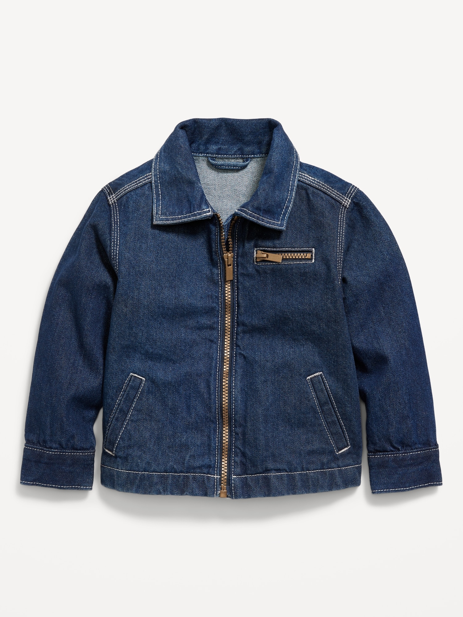 Full-Zip Jean Barn Coat for Toddler Boys: pointed collar, long sleeves, zippered pocket at chest, welt pockets, full length zipper, #752802