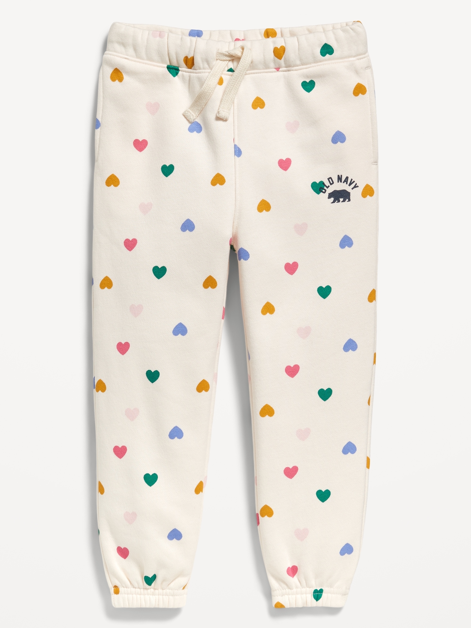 Functional Drawstring Logo Joggers for Toddler Girls: elasticized waistband, adjustable drawstring, on-seam hip pockets, logo graphic at hip, elasticized cinched cuffs, all-over print, easy pull-on style, available exclusively online and at old navy outlet stores., #800945