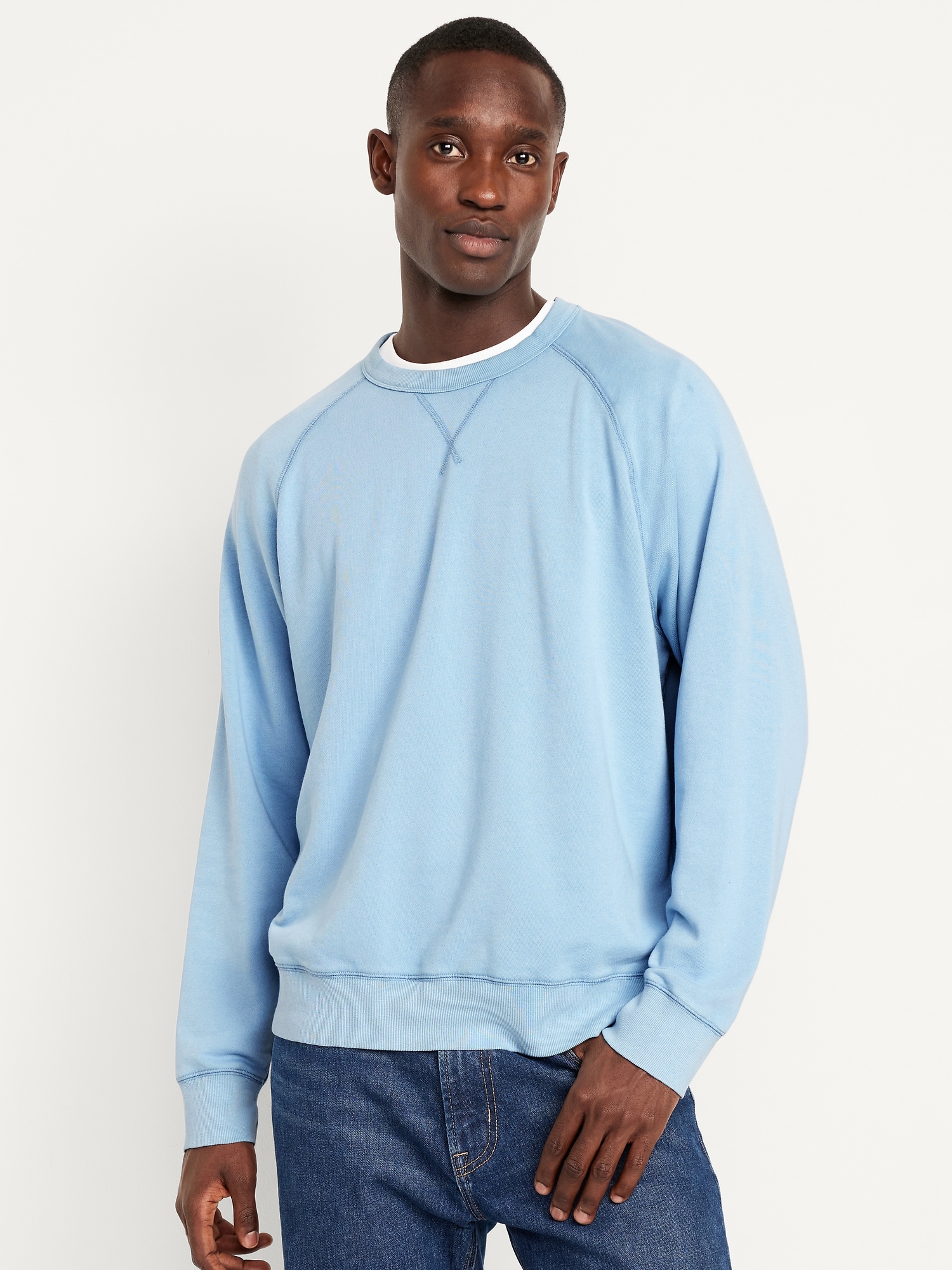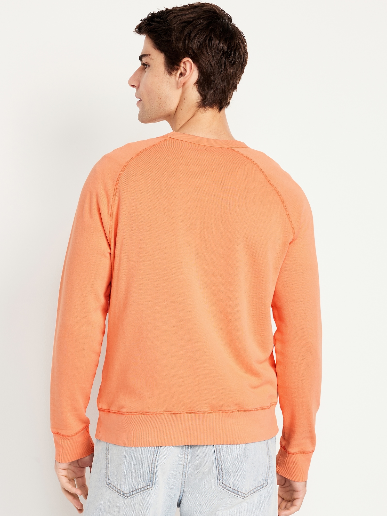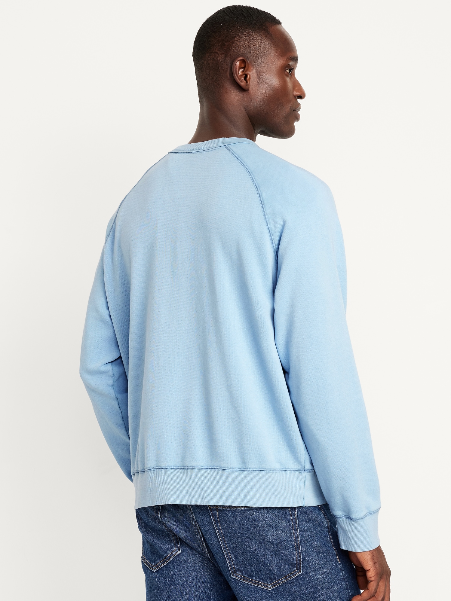 Garment-Dyed Crew-Neck Sweatshirt: crew neck, long raglan sleeves, front graphic varies, rib-knit trim, pullover style, #761169