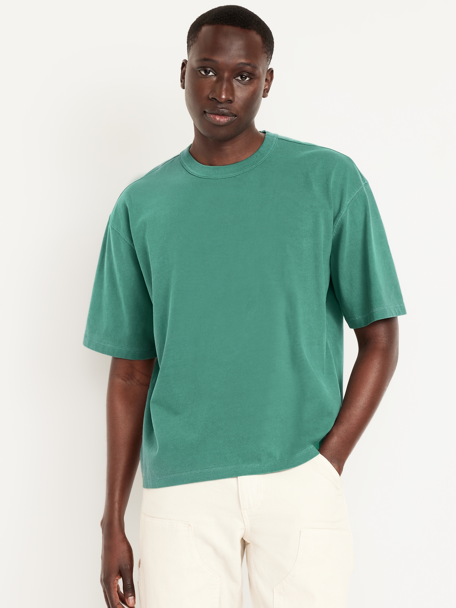 Garment-Dyed Cropped T-Shirt: rib-knit crew neck, short sleeves, #719209