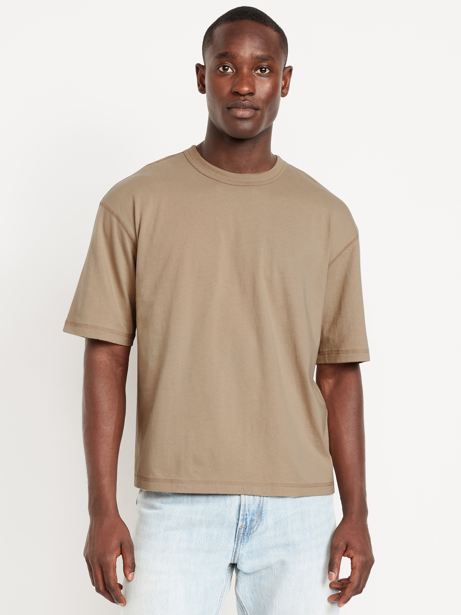 Garment-Dyed Cropped T-Shirt: rib-knit crew neck, short sleeves, #719209