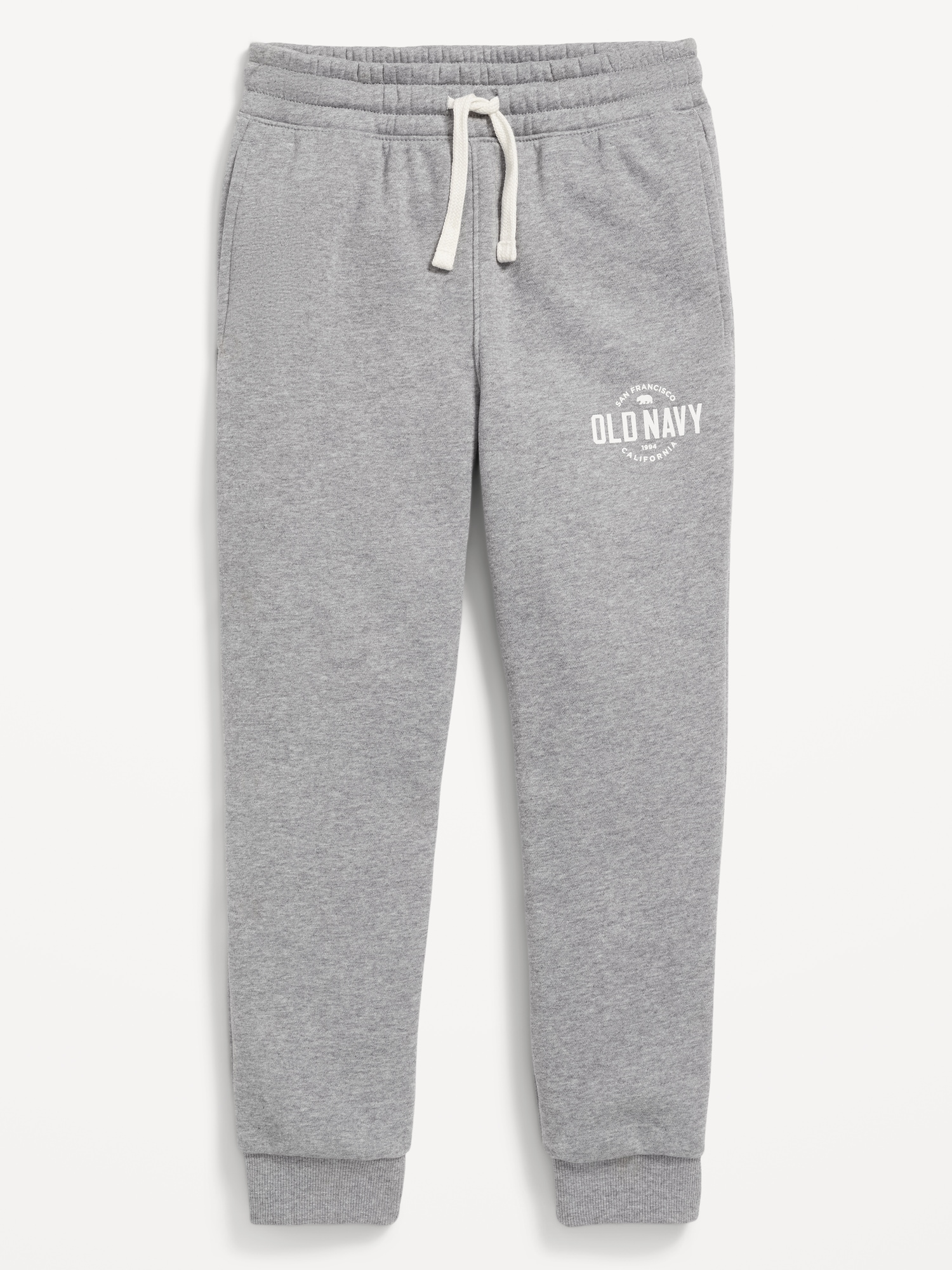 Gender-Neutral Logo-Graphic Jogger Sweatpants for Kids: elasticized waist, functional drawstring, on-seam welt pockets, banded leg cuffs, logo graphic at hip, #864789