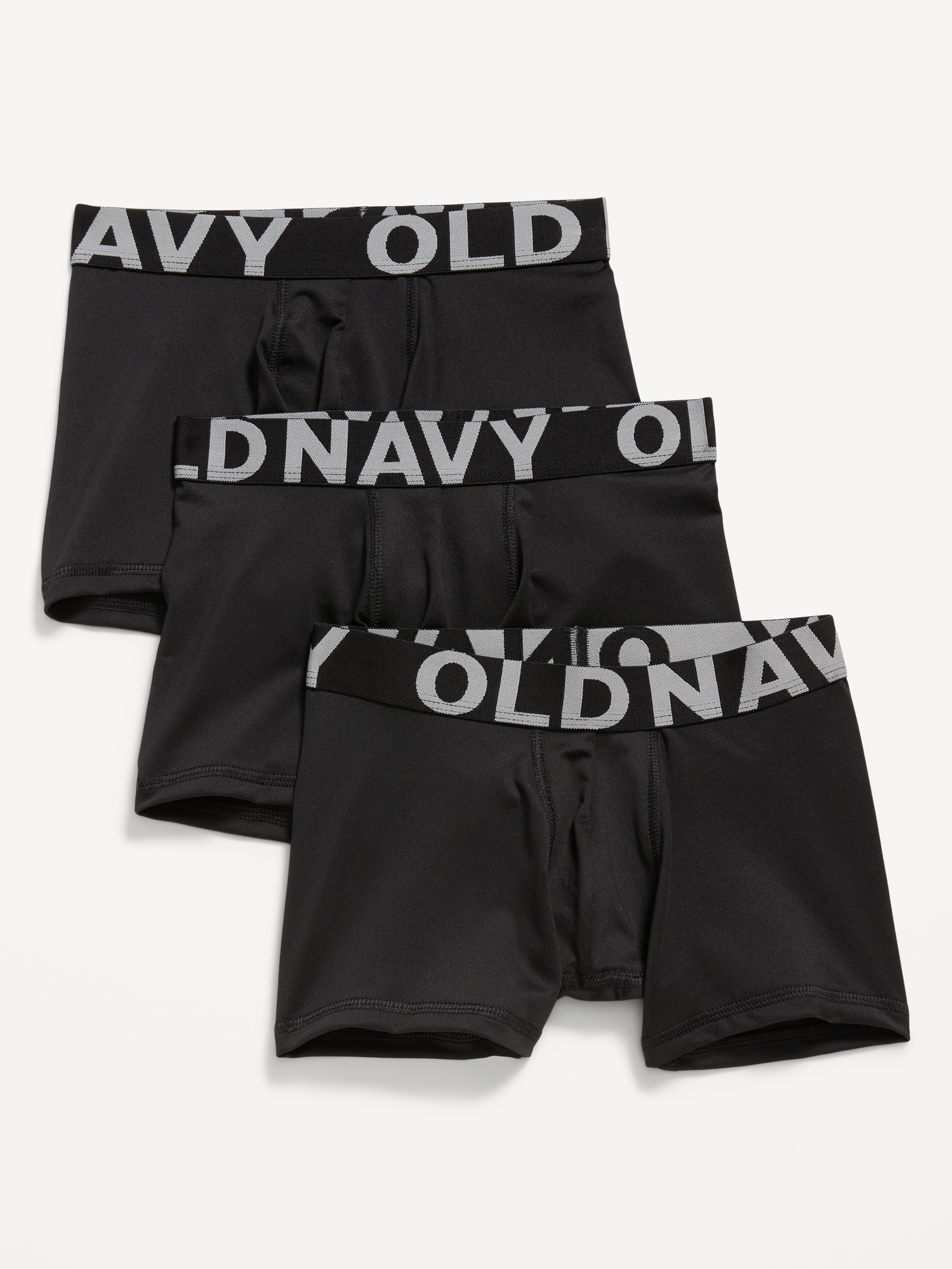 Go-Dry Boxer-Briefs Performance Underwear 3-Pack for Boys: elastic waistband, repeating old navy logo, fly front, #789029