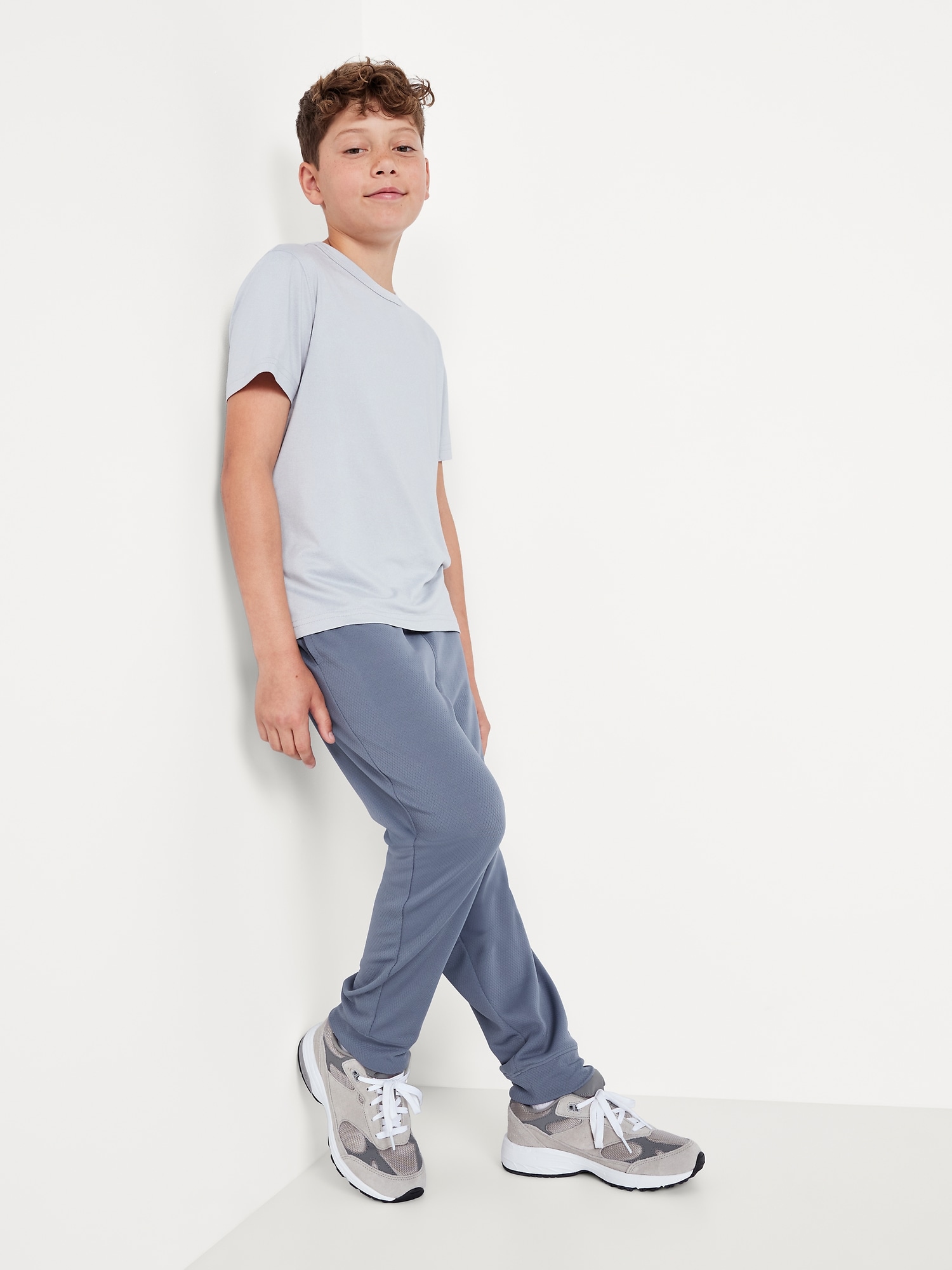 Go-Dry Mesh Jogger Pants for Boys: Made to keep up with all their shenanigans.elasticized waistband, interior adjustable drawstring, diagonal on-seam hip pockets, single zippered back pocket, banded cuffs, #804442