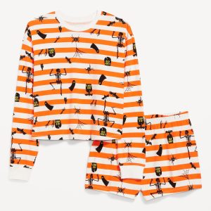 Halloween Pajama Short Set: set includes sleep top and coordinating shorts, crew neck, long drop-shoulder sleeves, elastic-waist sleep shorts, licensed graphic, © Disney, #804829