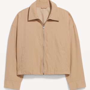 Harrington Zip Jacket: spread collar, drop-shoulder sleeves with snap cuffs, full-zip front, welt pockets, cinched hem, #790492