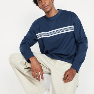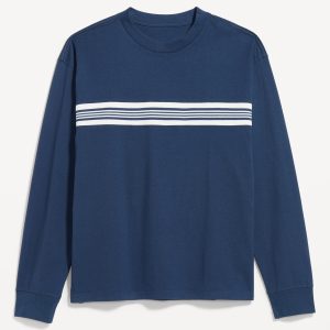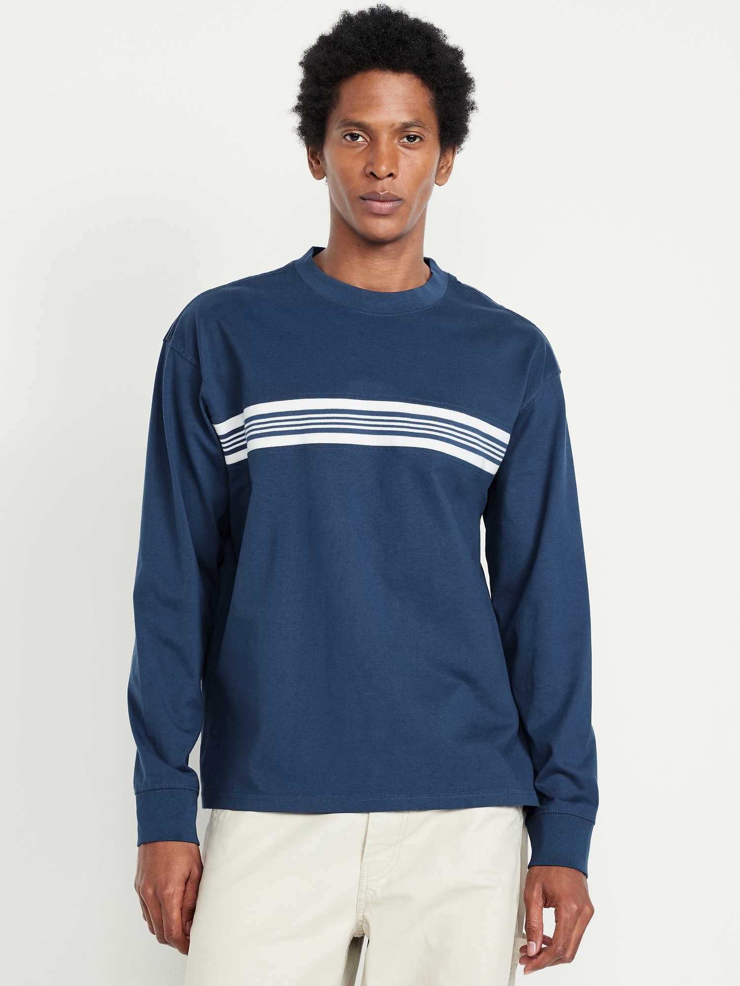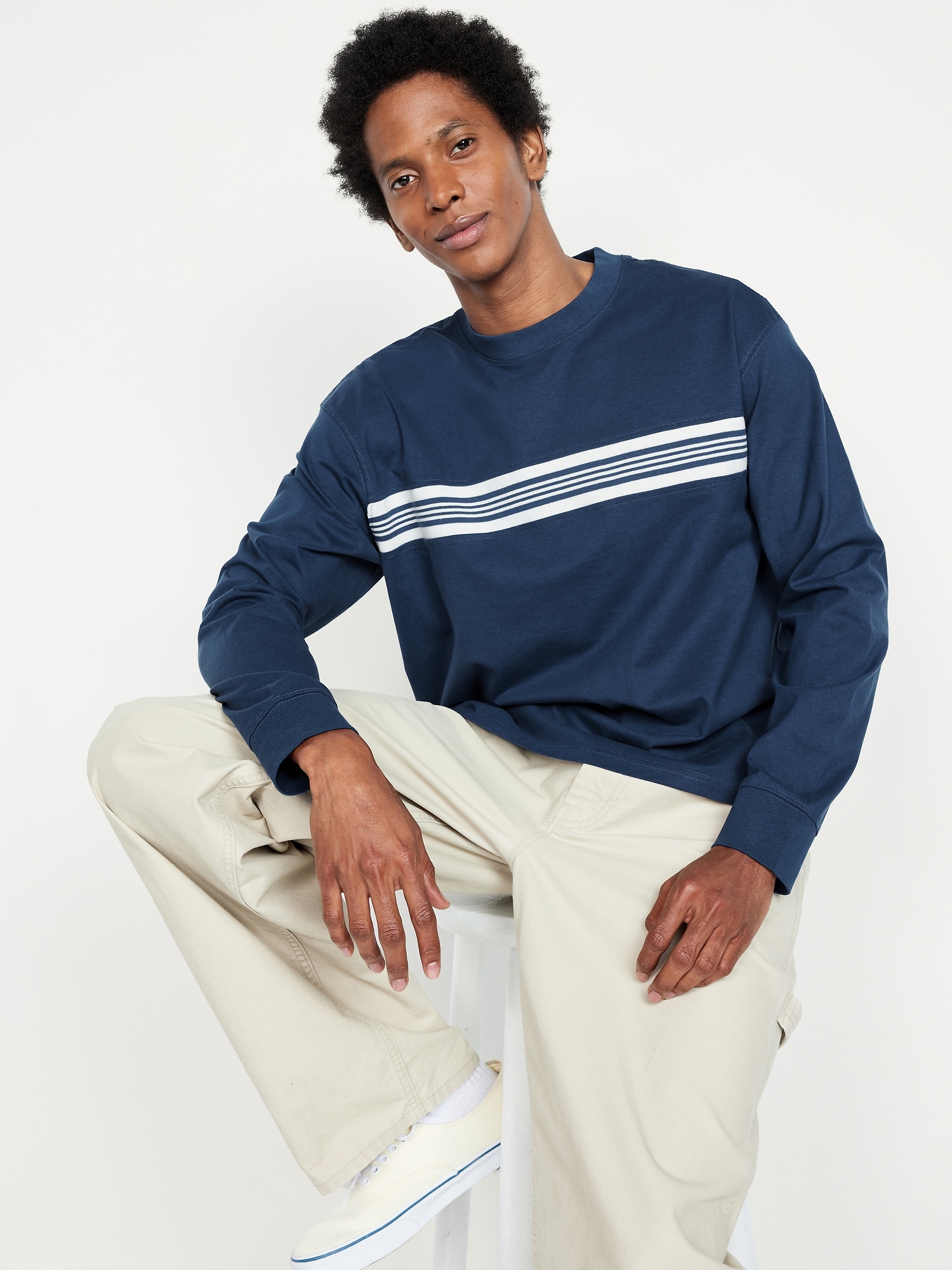 Heavyweight Chest-Stripe T-Shirt: rib-knit crew neck, long sleeves with rib-knit cuffs, contrasting chest stripes, #801794