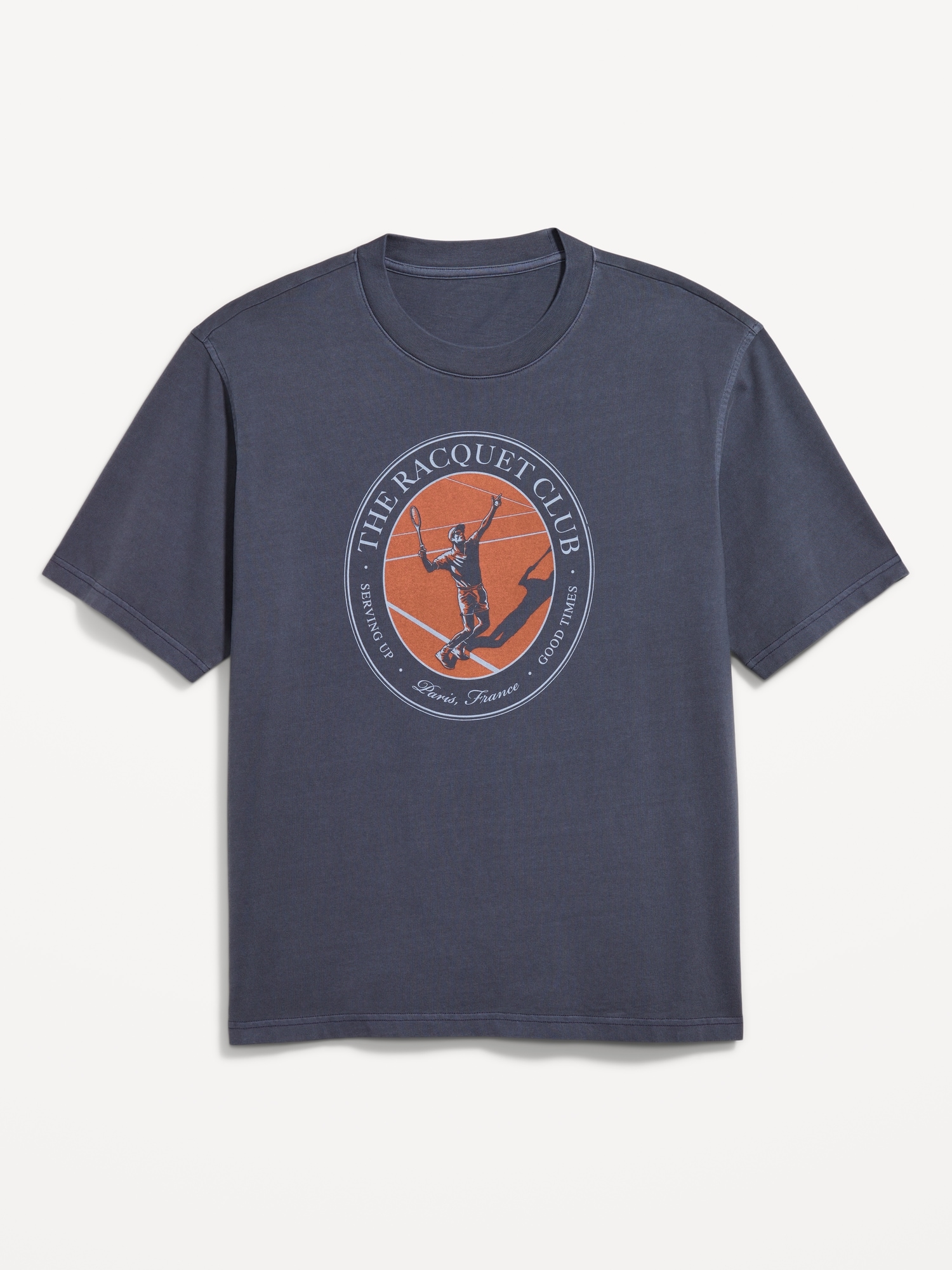 Heavyweight Crew-Neck Graphic T-Shirt: rib-knit crew neck, short sleeves, front graphic varies, #752308