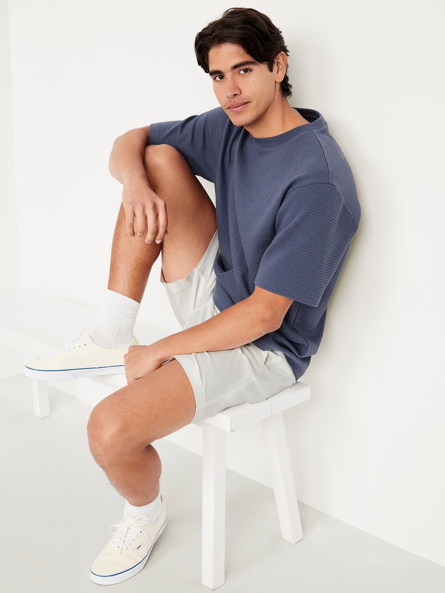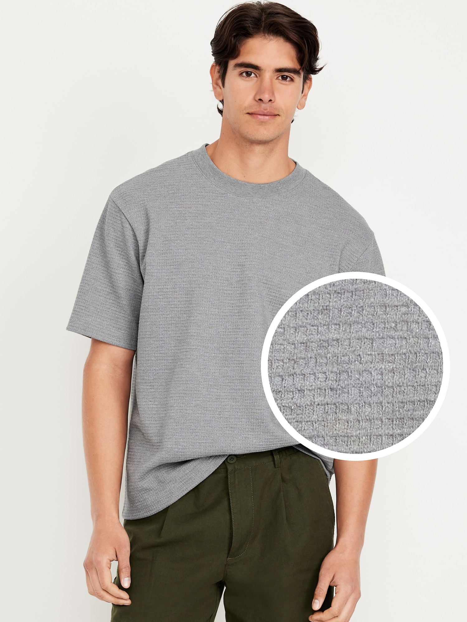 Heavyweight Crew-Neck Waffle T-Shirt: rib-knit crew neck, short sleeves, #764244