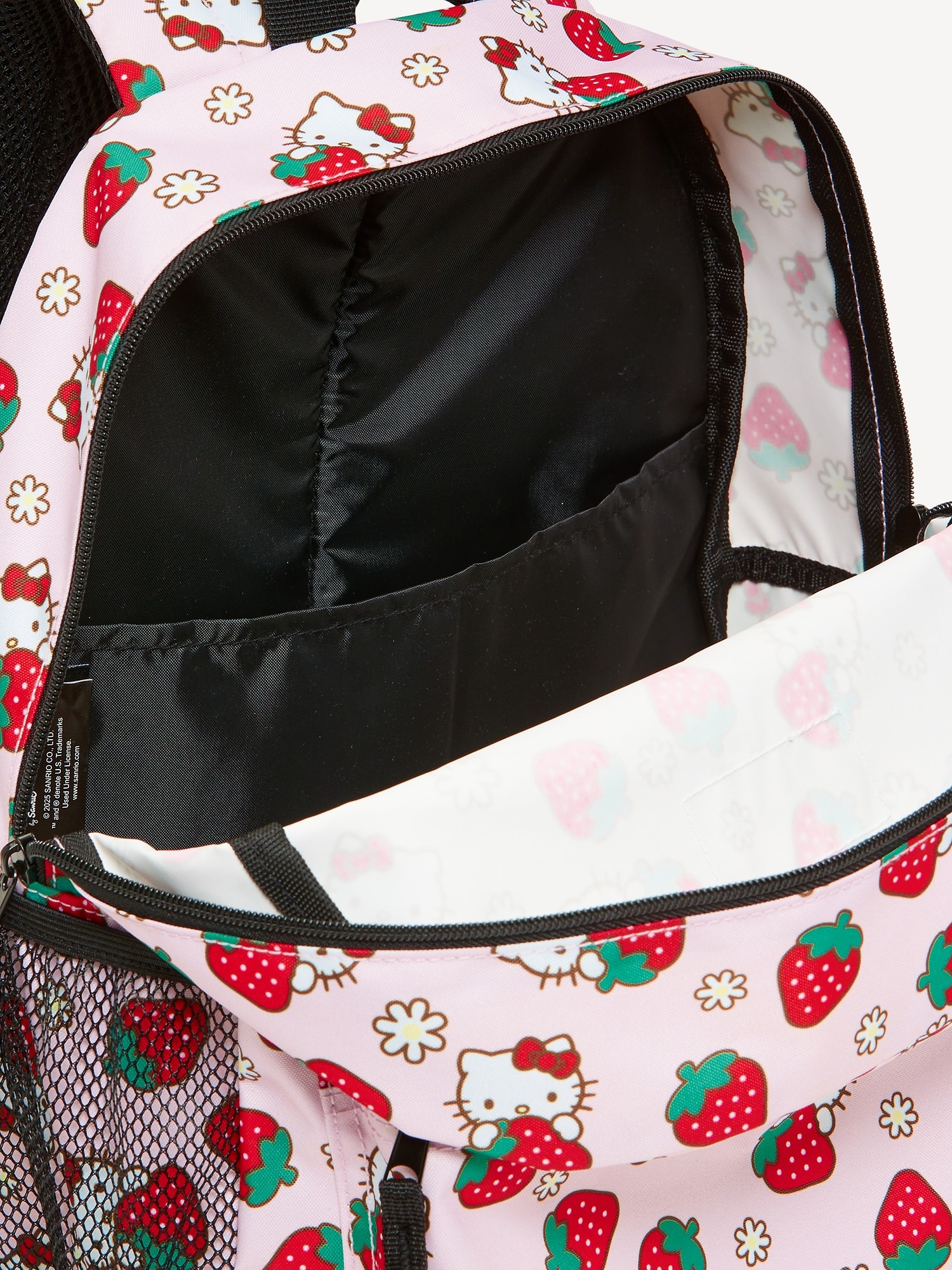 Hello Kitty® Canvas Backpack for Girls: The pack that’s got their literal back.zip-top closure, canvas handle, padded shoulder straps with adjustable buckles, padded mesh back for added comfort and breathability, exterior zippered pouch compartment, durable stretchy mesh side pouch, smooth interior with interior mesh pocket, © 2025 SANRIO CO. LTD. Used Under License., #762680