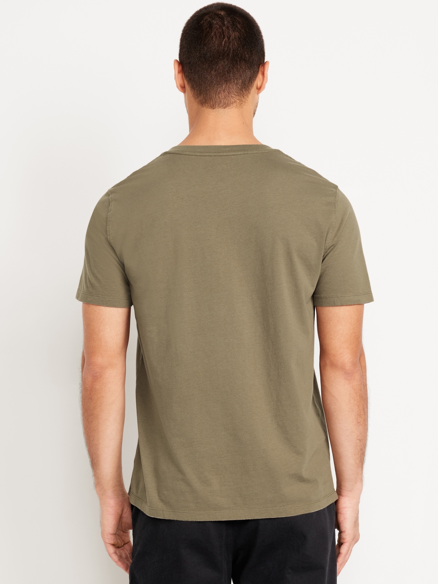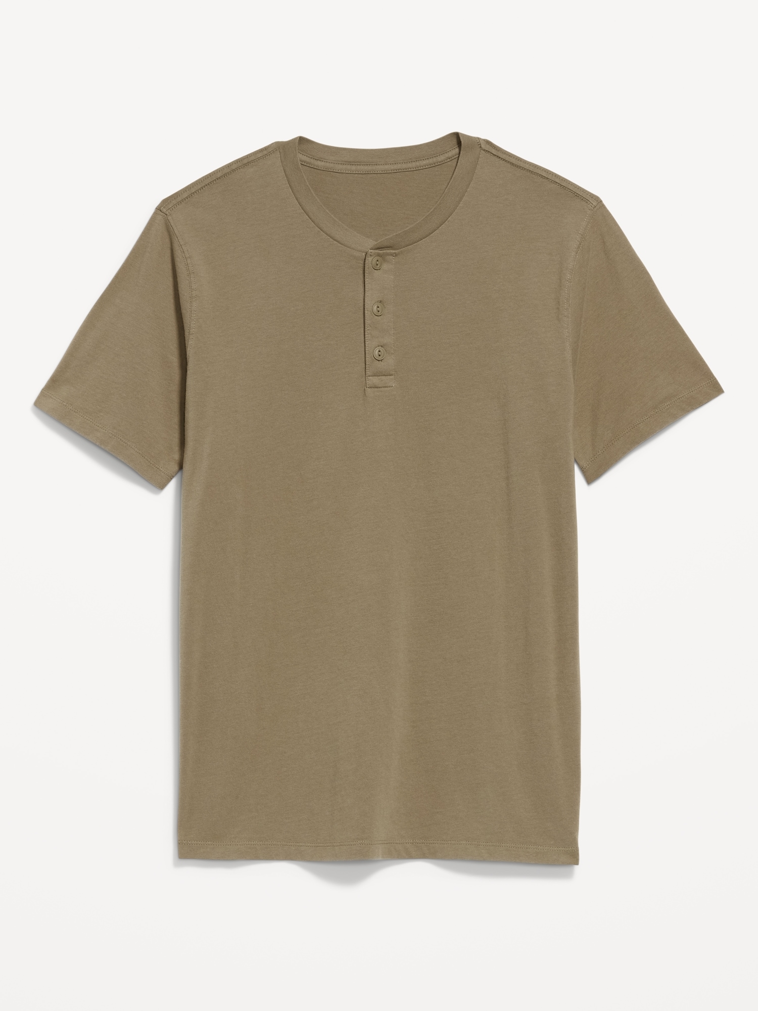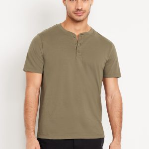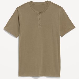 Henley T-Shirt: rib-knit crew neck, short sleeves, three-button henley placket, #687868