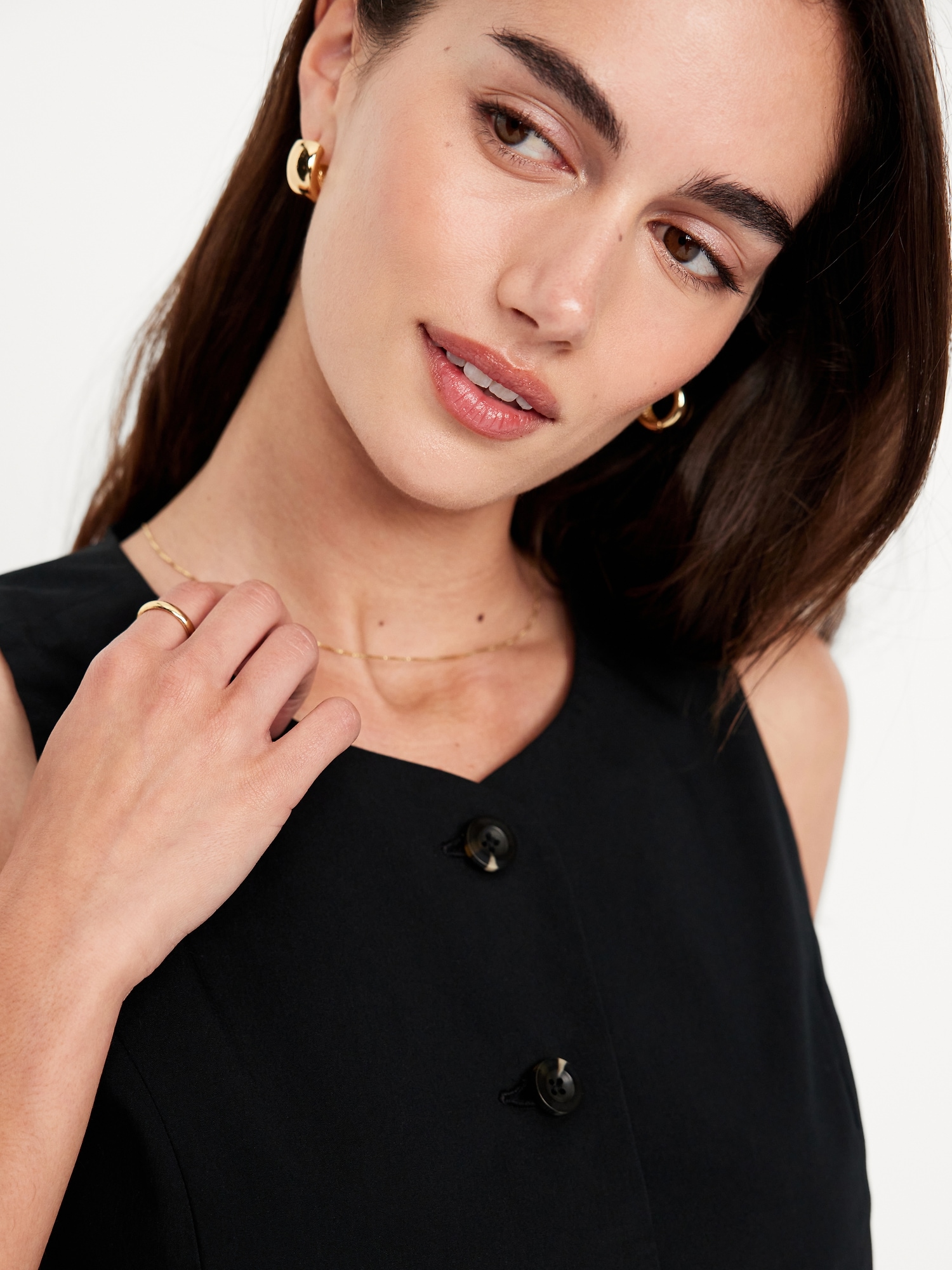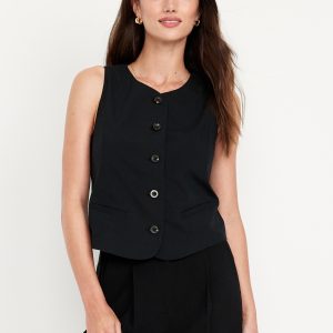High-Neck Button-Down Vest