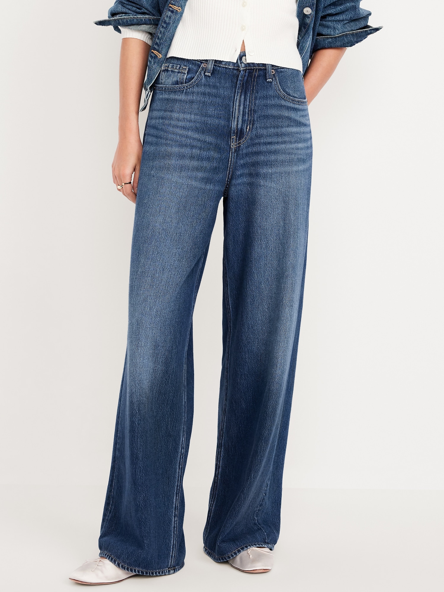 High-Waisted Baggy Wide-Leg Studded Jeans: The oversized wide-leg jean of your teenage dreams.studded accent at sides, high waist, zip fly, #800683