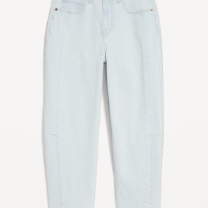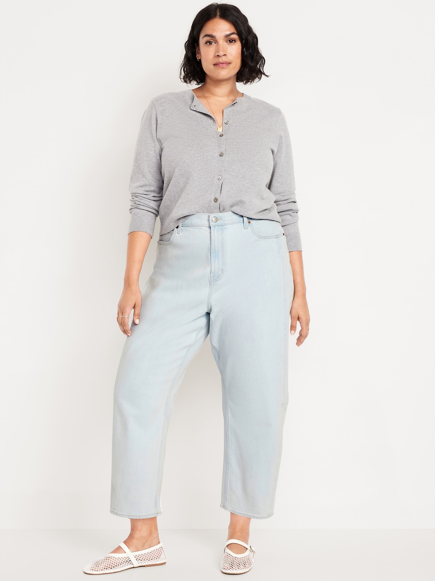 High-Waisted Barrel Ankle Jeans: A curved, tapered leg and proportion play from hip to hem.high waisted, zip fly, seamed barrel leg, #804566