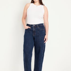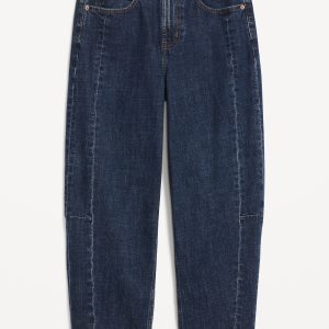 High-Waisted Barrel Ankle Jeans: A curved, tapered leg and proportion play from hip to hem.high waisted, zip fly, seamed barrel leg, #804566