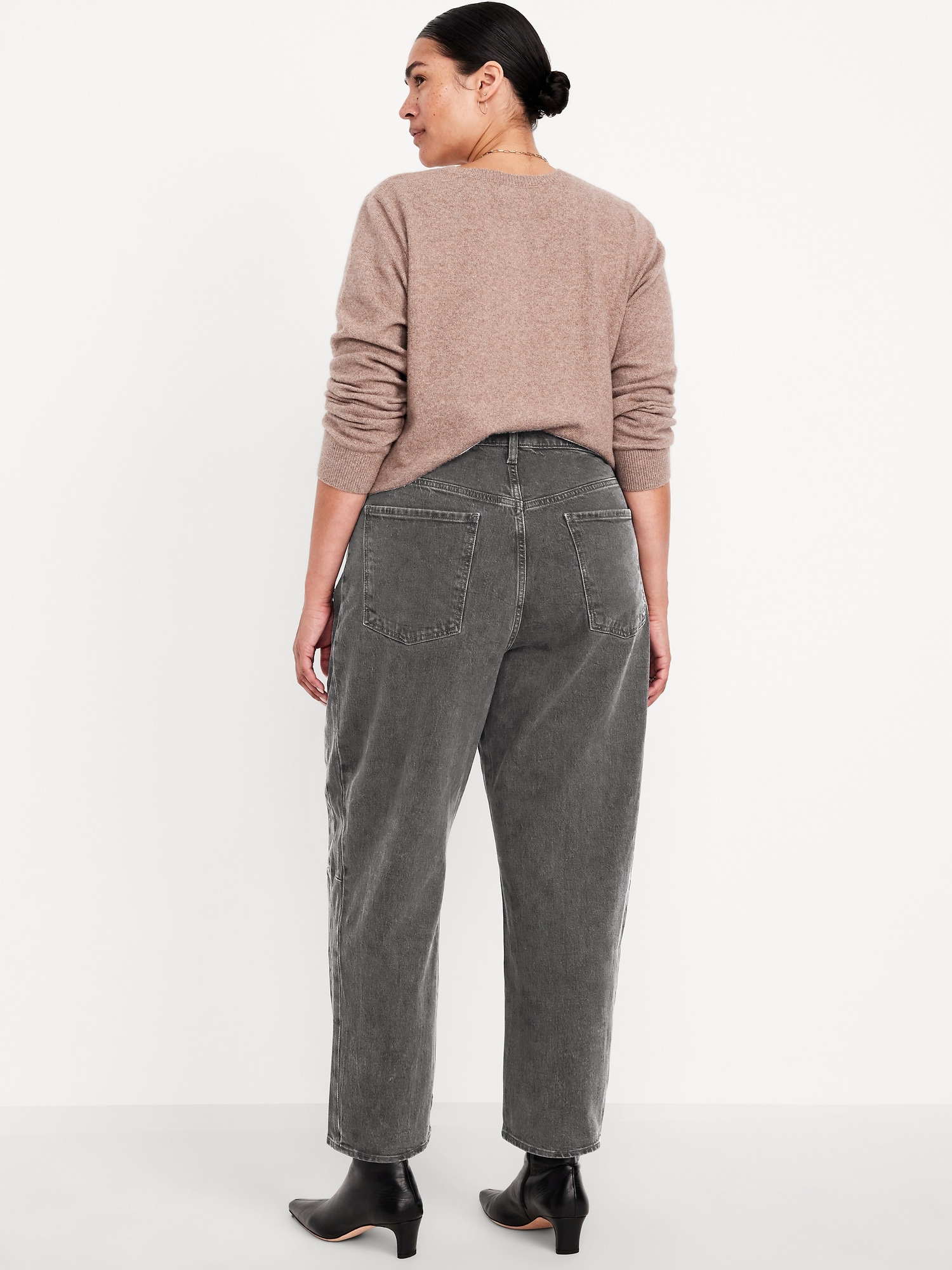 High-Waisted Barrel Ankle Jeans: A curved, tapered leg and proportion play from hip to hem.high waisted, zip fly, seamed barrel leg, #804566