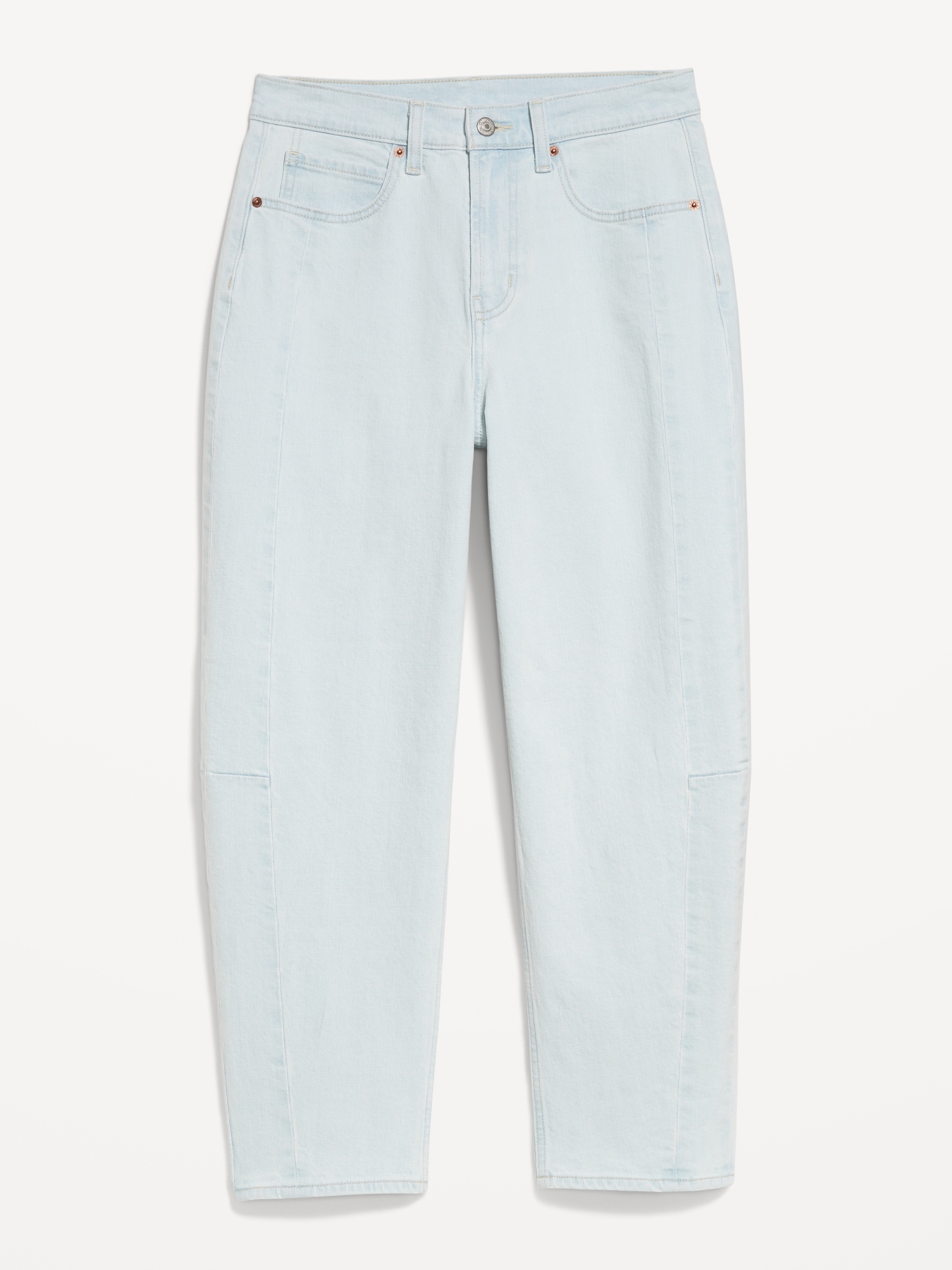 High-Waisted Barrel Ankle Jeans: A curved, tapered leg and proportion play from hip to hem.high waisted, zip fly, seamed barrel leg, #804566