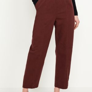 High-Waisted Barrel Ankle Pants: The effortless curved shape that’s so hot right now.comfort-elastic pull-on waistband, diagonal front pockets, back patch pockets, darted knee, seamed leg, #801608