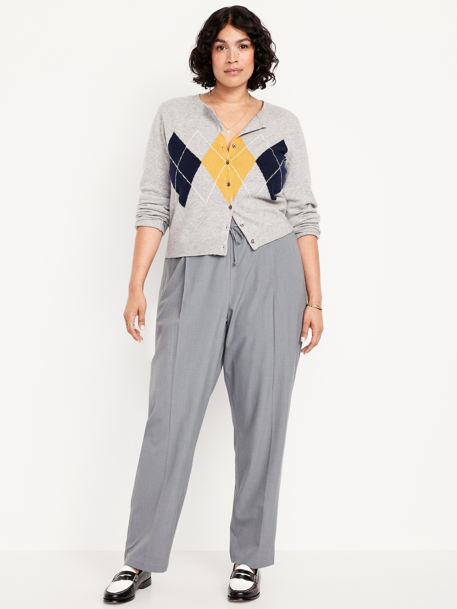 High-Waisted Billie Straight Ankle Trouser: A pleated pull-on pant for work and play.comfort elastic-drawstring waist, hip pockets, back right welt pocket, #799291
