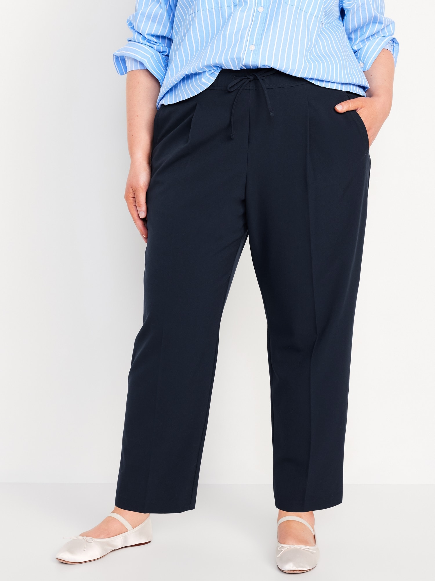 High-Waisted Billie Straight Ankle Trouser: A pleated pull-on pant for work and play.comfort elastic-drawstring waist, hip pockets, back right welt pocket, #799291