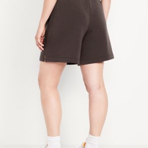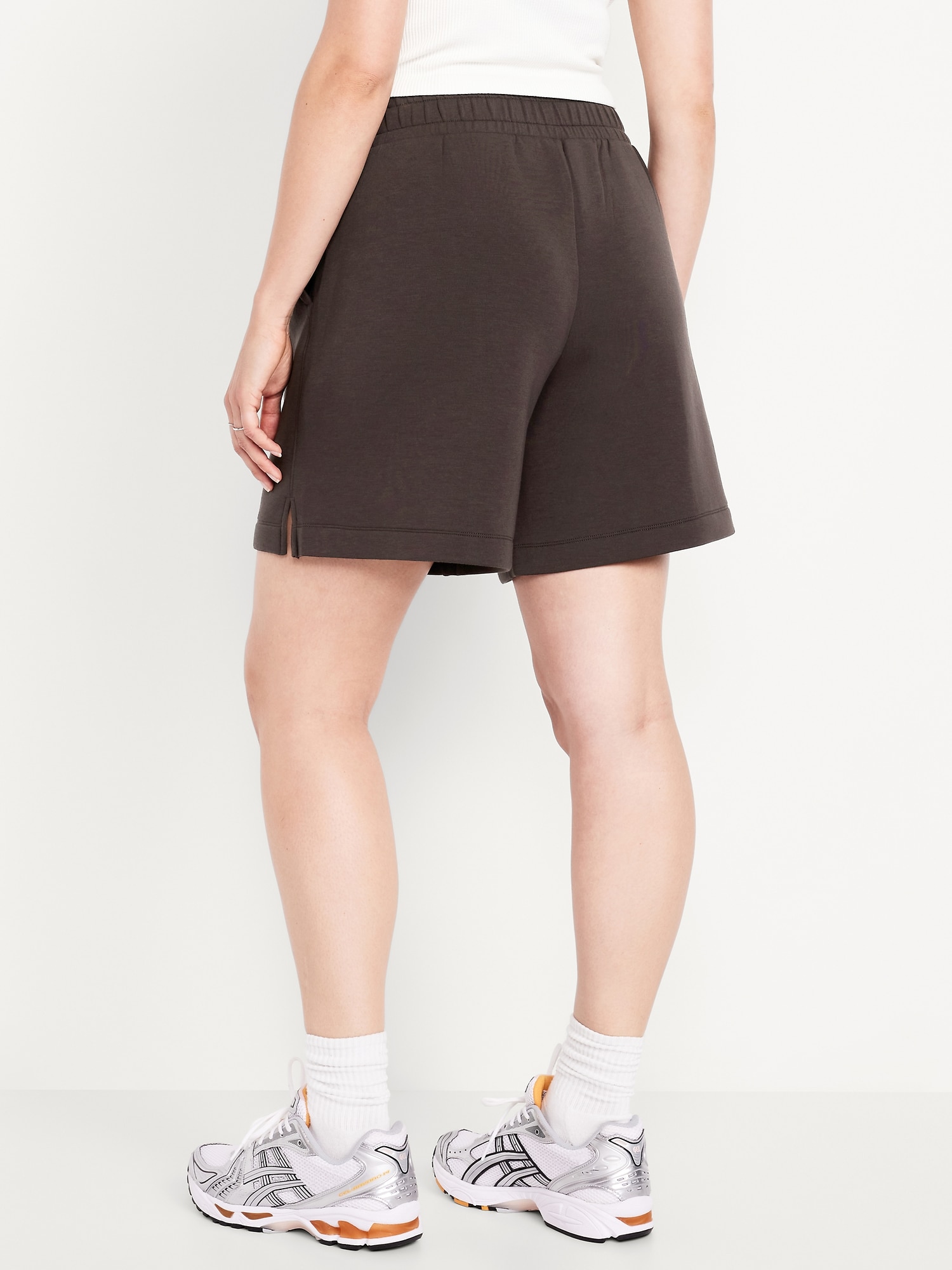 High-Waisted Bounce Fleece Shorts — 8-inch inseam: Featuring Bounce Fleece. A smooth, cooling finish that feels good and looks chic everywhere you go.elastic waistband, breathable, pull-on style, #764339