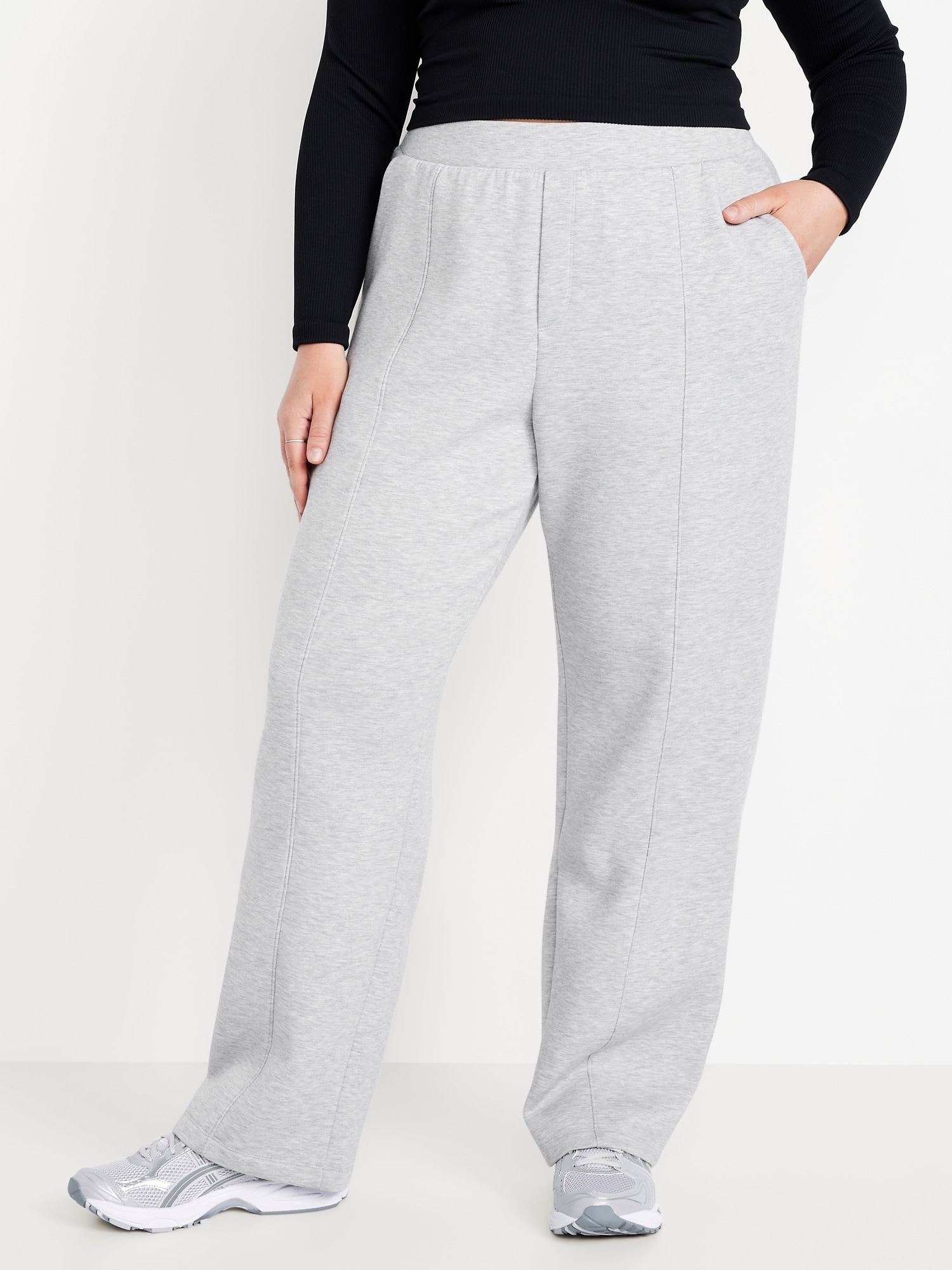 High-Waisted Bounce Fleece Trouser Sweatpants: Featuring Bounce Fleece. A smooth, cooling finish that feels good and looks chic everywhere you go.seamed front leg, hip pockets, back right welt pocket, breathable, pull-on style, #784453