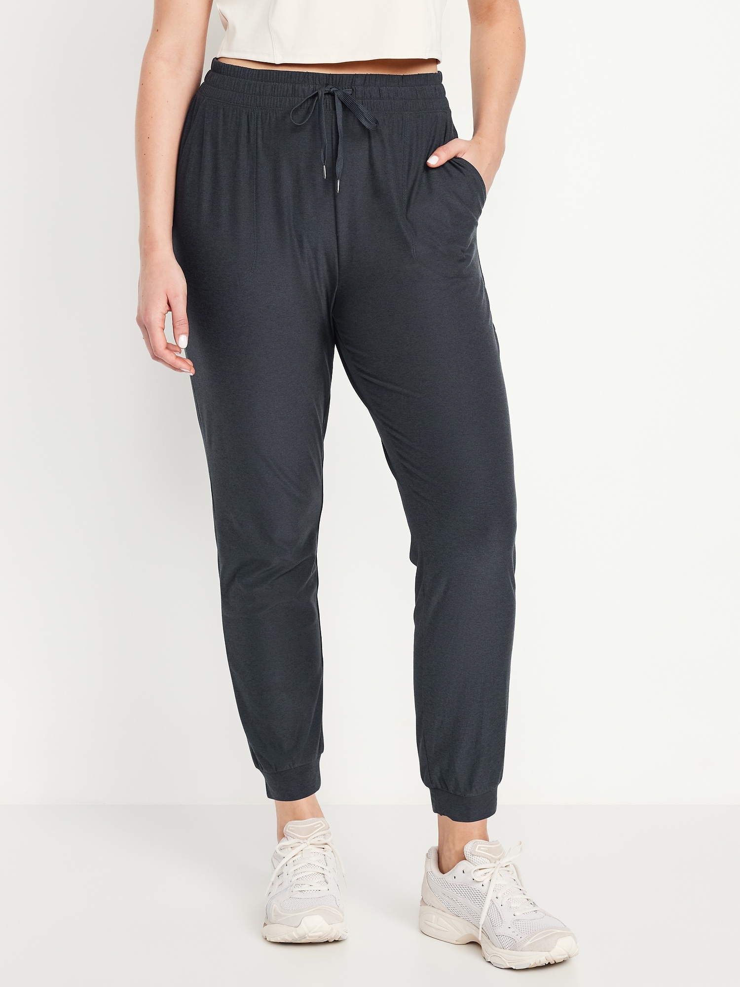 High-Waisted CloudMotion Joggers: The new Cloud94 Soft. Versatile, sweat-wicking and soft as a literal cloud.elastic-drawstring waistband, front pockets, go-dry wicks moisture, breathable, pull-on style, #484581