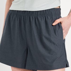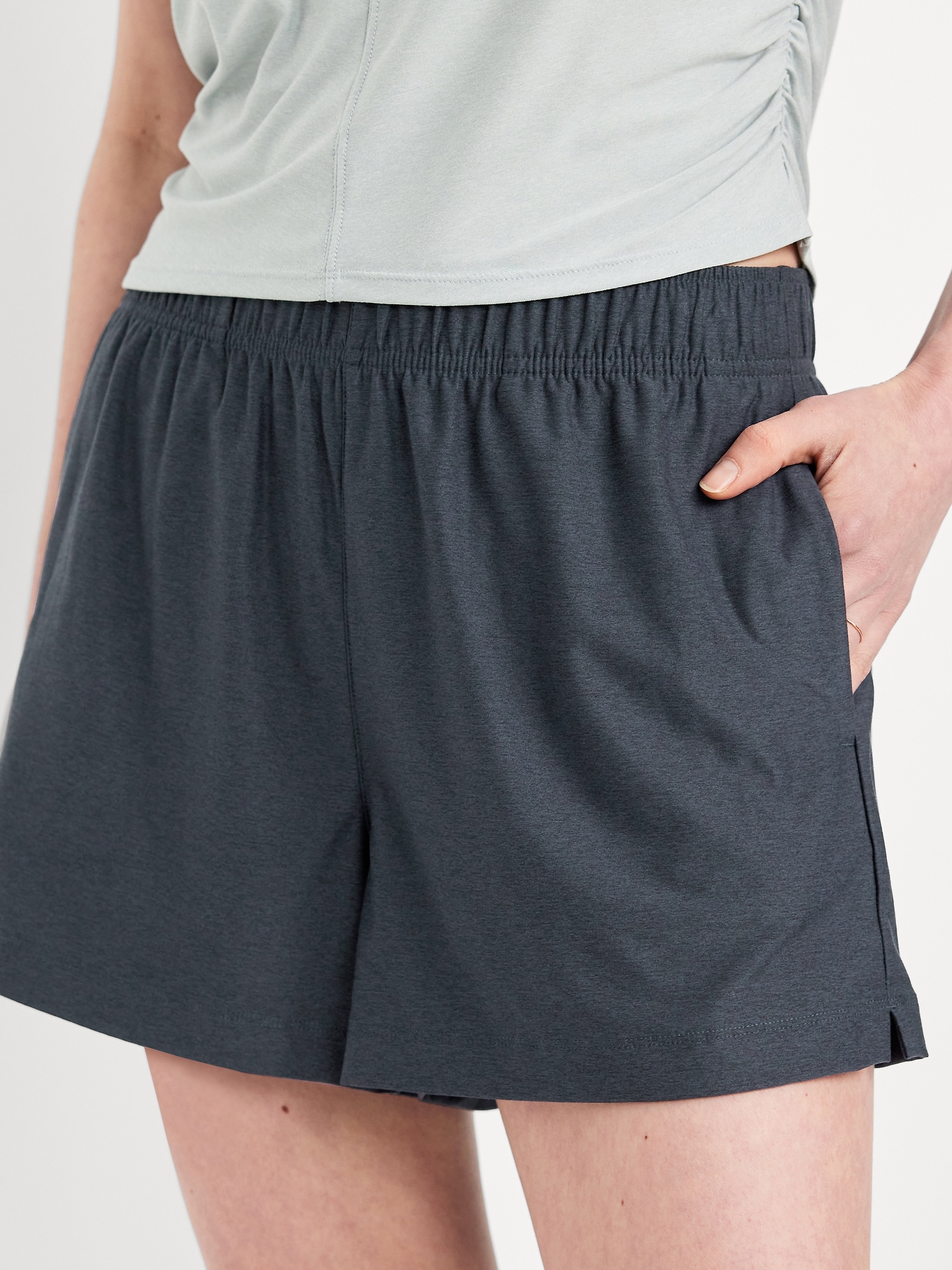 High-Waisted CloudMotion Shorts — 3-inch inseam: The new Cloud94 Soft. Versatile, sweat-wicking and soft as a literal cloud.elastic waistband, on-seam side pockets, notched hem, go-dry wicks moisture, breathable, #748687