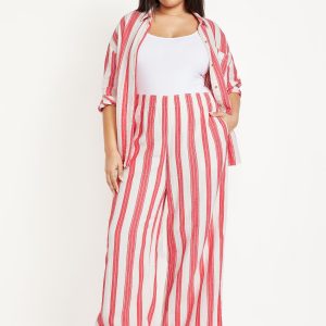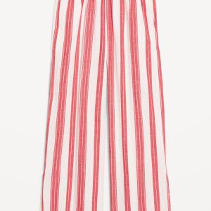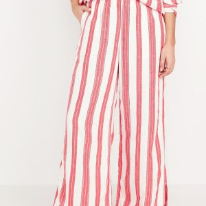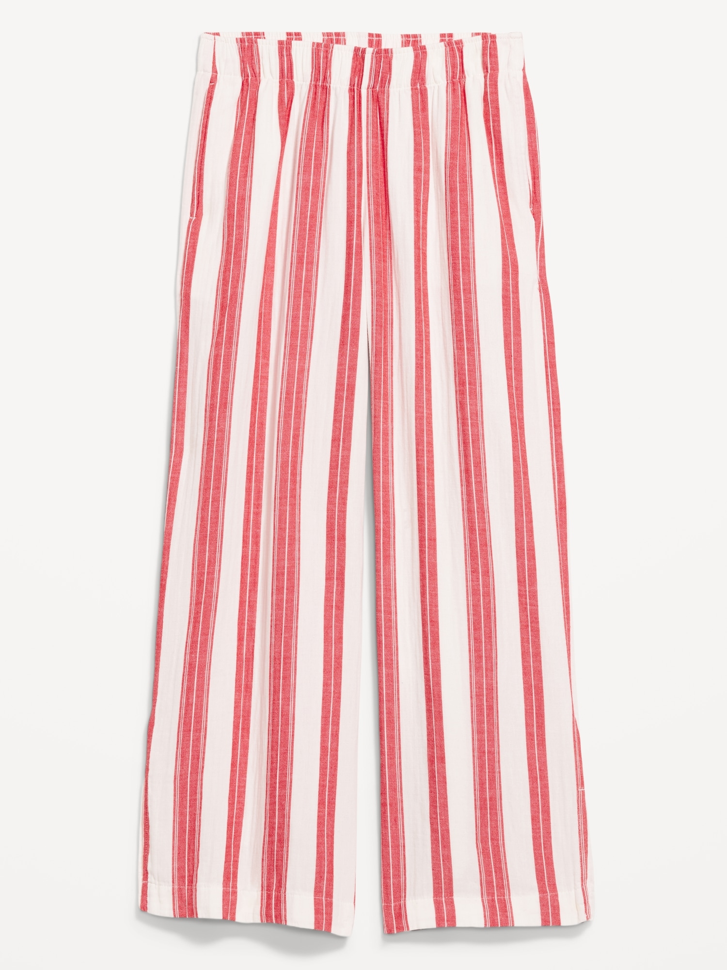 High-Waisted Crinkle Gauze Super Wide-Leg Pants: A light, rippled fabric that’s begging to be beachside.comfort-elastic high pull-on waistband, on-seam pockets, super wide leg, striped print, #683359