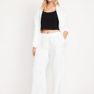 High-Waisted Crinkle Gauze Super Wide-Leg Pants