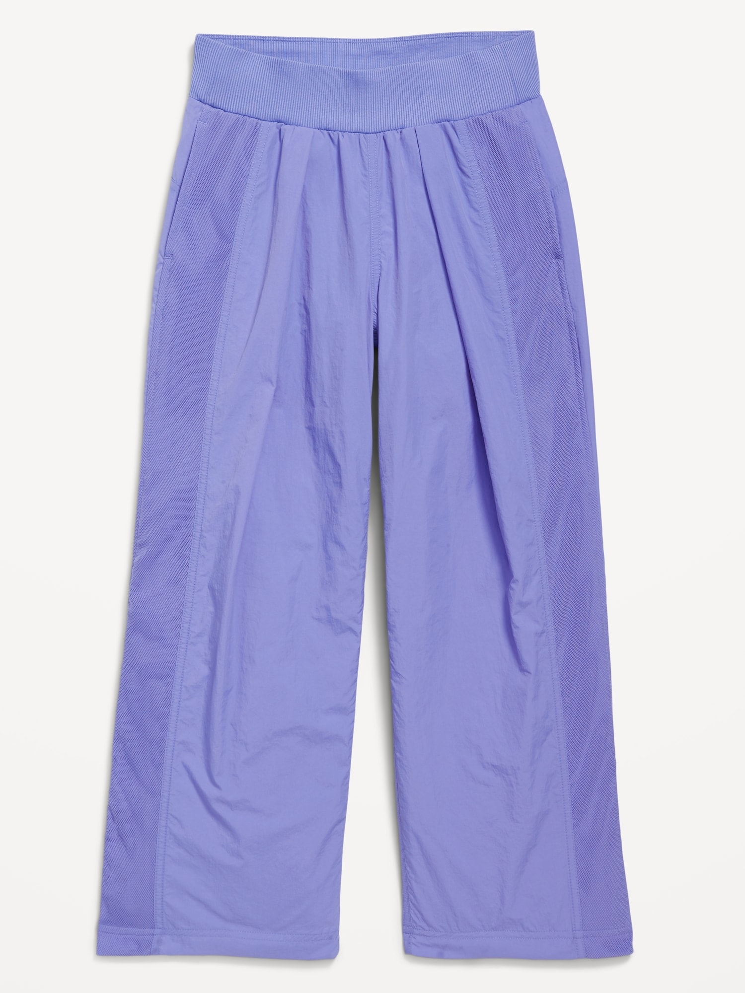 High-Waisted Crinkle Wide-Leg Pants for Girls: elasticized waistband, high rise, on-seam pockets, wide leg, #696557