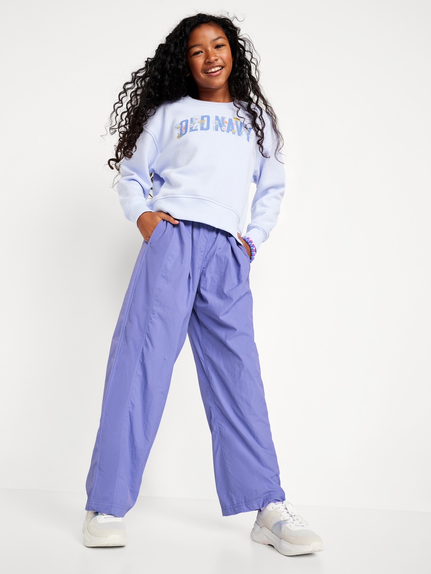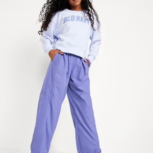 High-Waisted Crinkle Wide-Leg Pants for Girls: elasticized waistband, high rise, on-seam pockets, wide leg, #696557