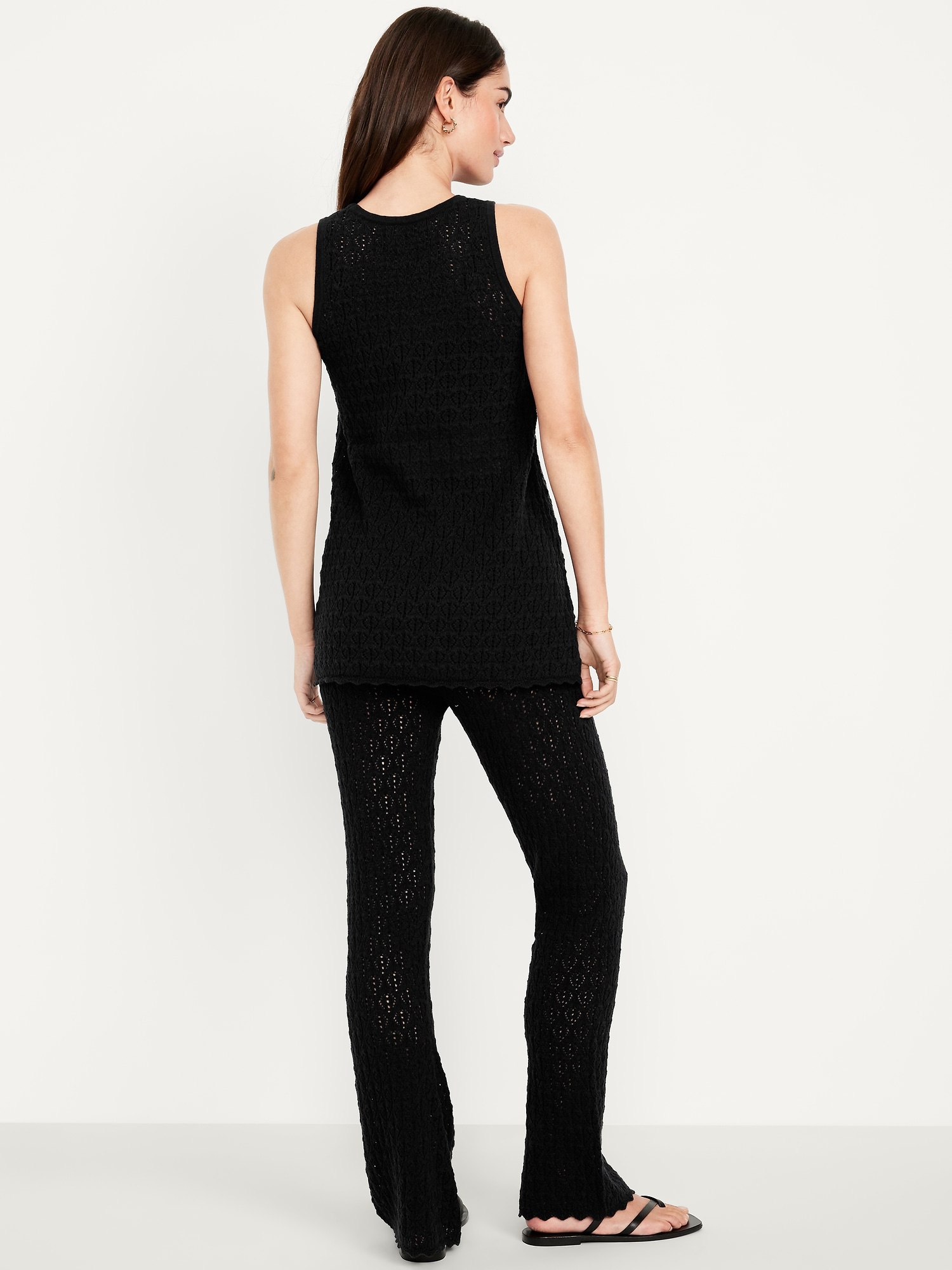 High-Waisted Crochet Flare Pants: pull-on elastic waistband, scallop hem, pair back to our matching crochet top, #761571
