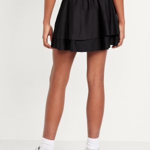 High-Waisted Crossover PowerSoft Skort for Girls: built-in biker shorts, high-rise, crossover elasticized waistband, mini-length skirt, side pocket on shorts, easy pull-on style, #696570