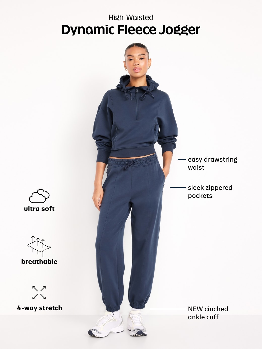 High-Waisted Dynamic Fleece Sweatpants: Featuring Dynamic Fleece. Soft, smooth fleece plus made-to-move stretch.elastic-drawstring waistband, zippered hip pockets, cinched-elastic cuffs, pull-on style, #784454