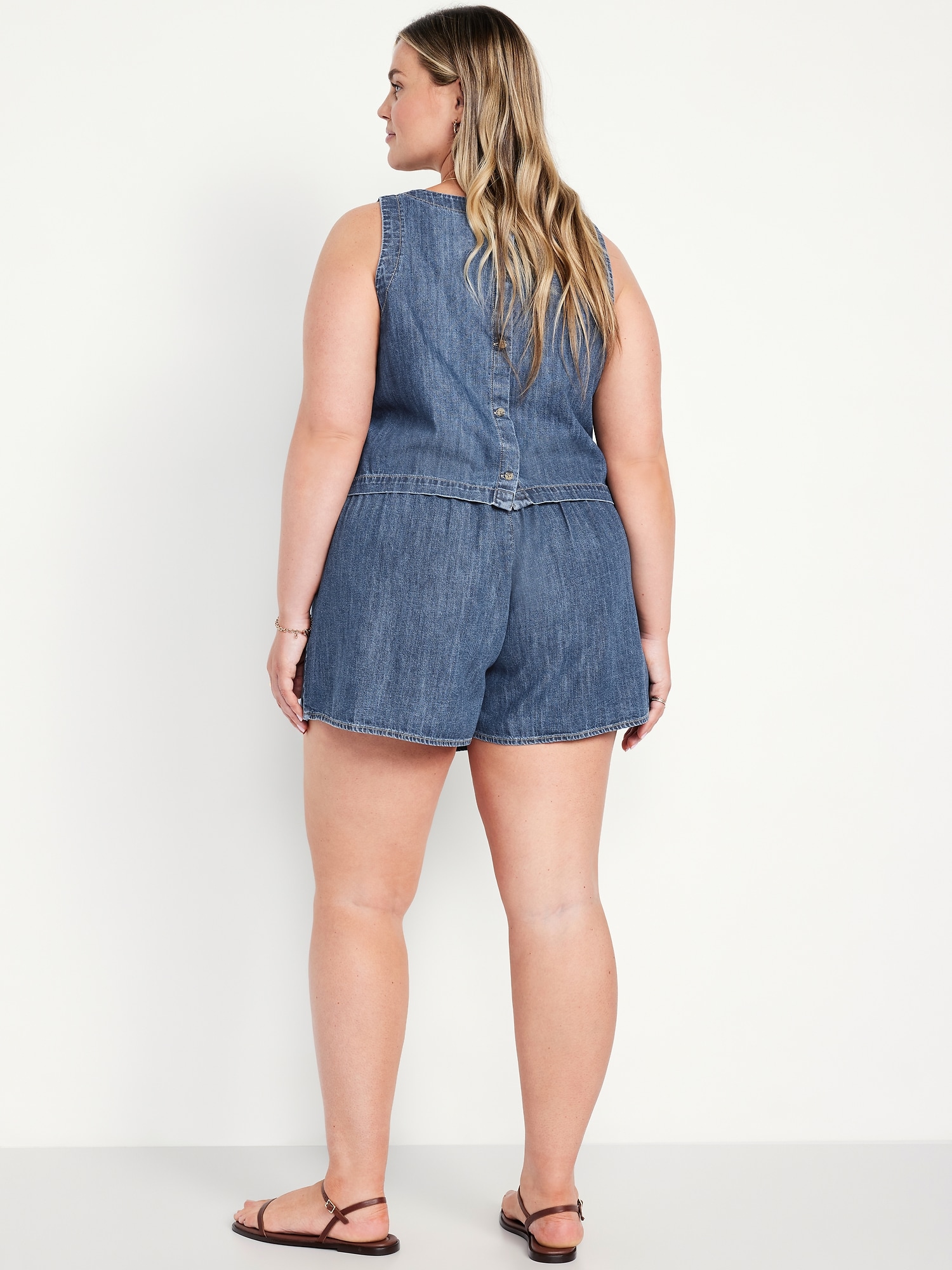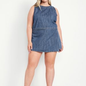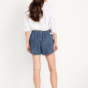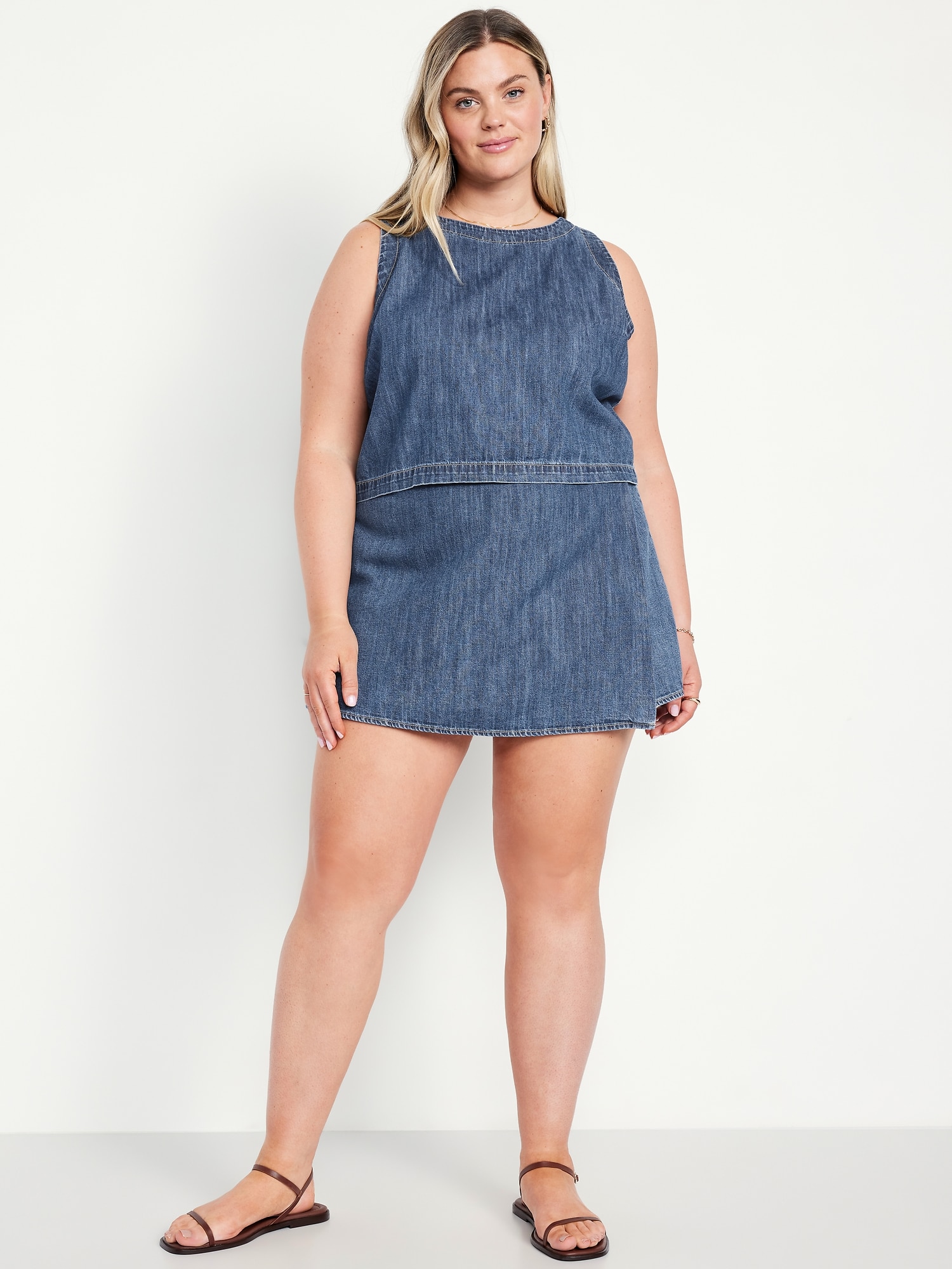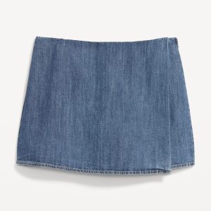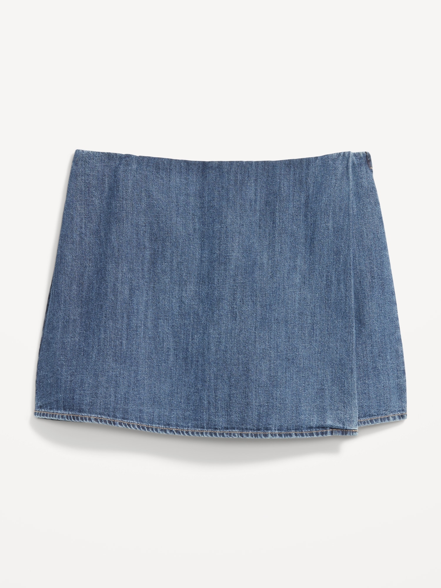 High-Waisted Faux-Wrap Linen-Blend Mini Skort: faux-wrap front, elastic back waist, built-in shorts, #766917
