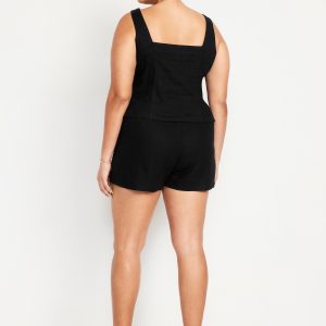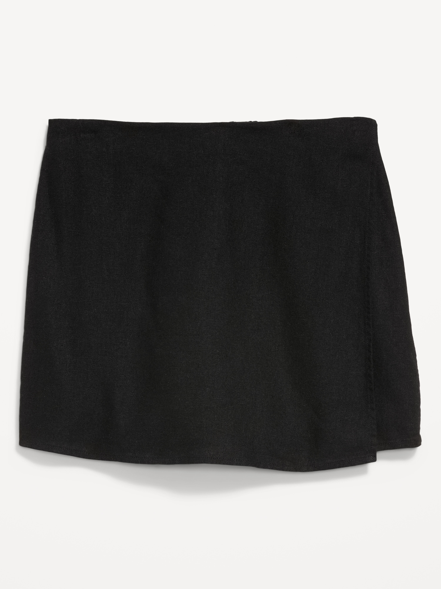 High-Waisted Faux-Wrap Linen-Blend Mini Skort: faux-wrap front, elastic back waist, built-in shorts, #766917