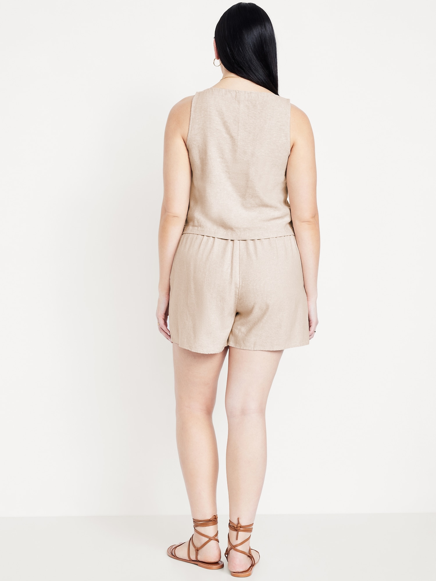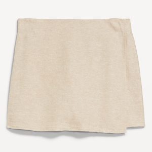 High-Waisted Faux-Wrap Linen-Blend Mini Skort: faux-wrap front, elastic back waist, built-in shorts, #766917