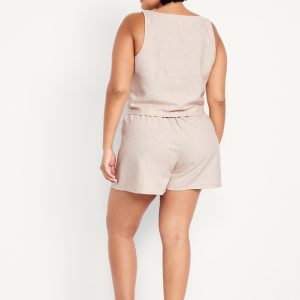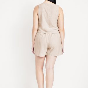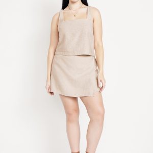 High-Waisted Faux-Wrap Linen-Blend Mini Skort