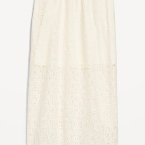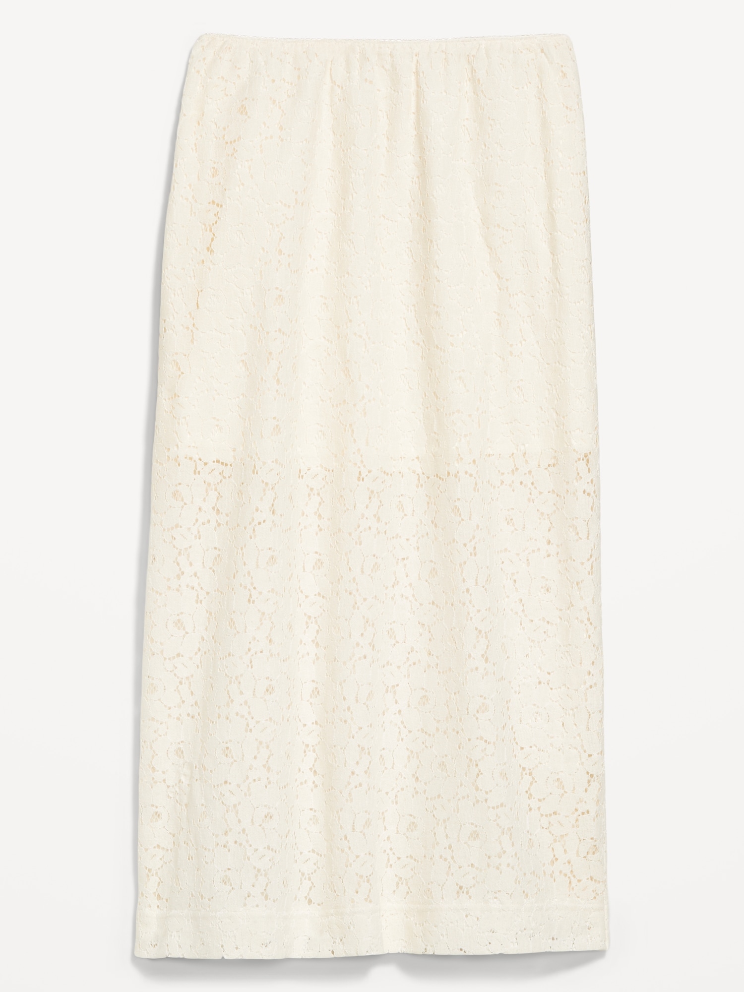 High-Waisted Lace Midi Skirt: elastic waistband, mini-length lining, easy pull-on style, #798241