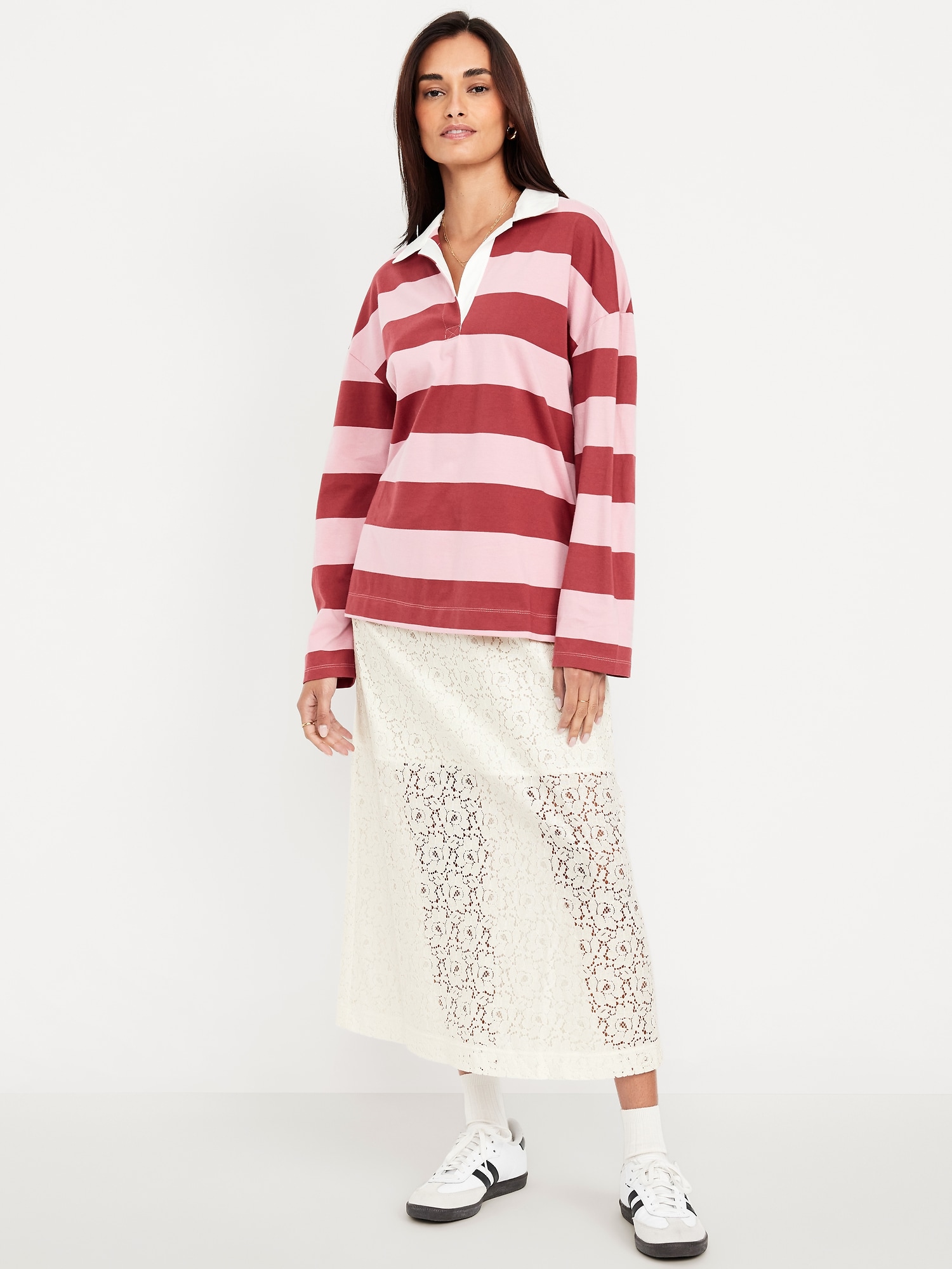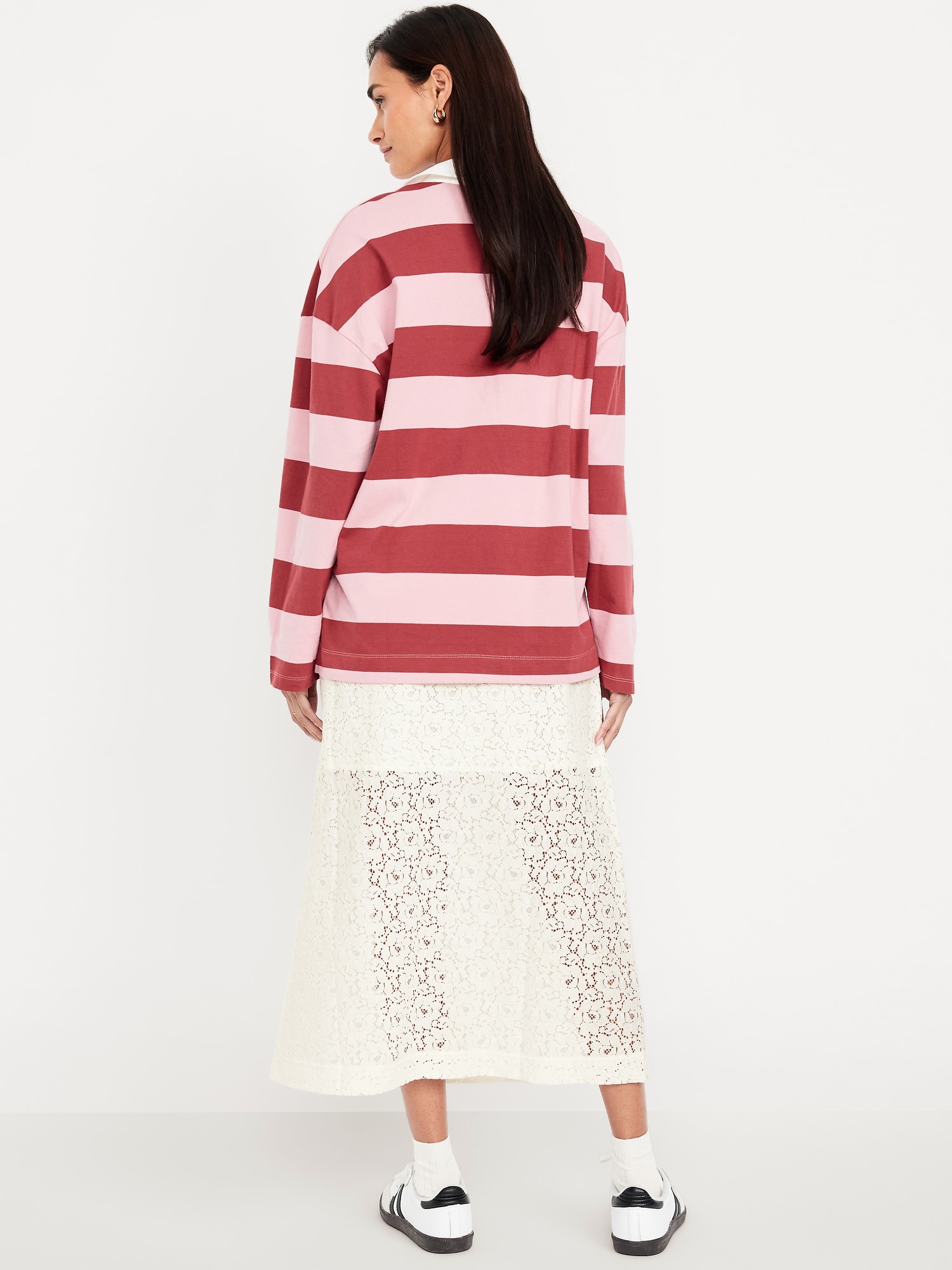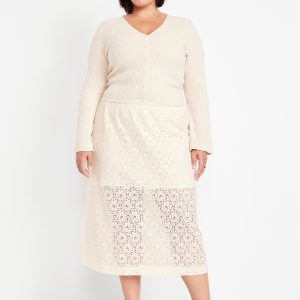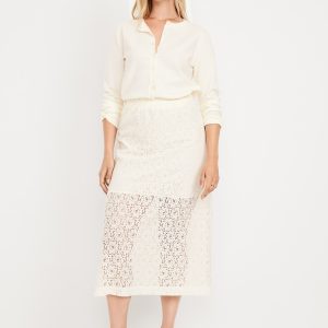 High-Waisted Lace Midi Skirt