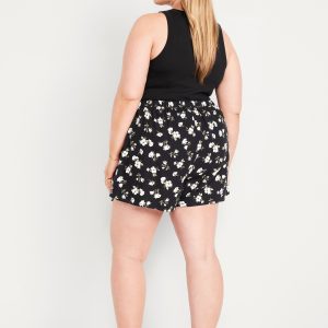 High-Waisted Linen-Blend Mini Skort: faux-wrap front, elastic back waist, built-in shorts, #766917
