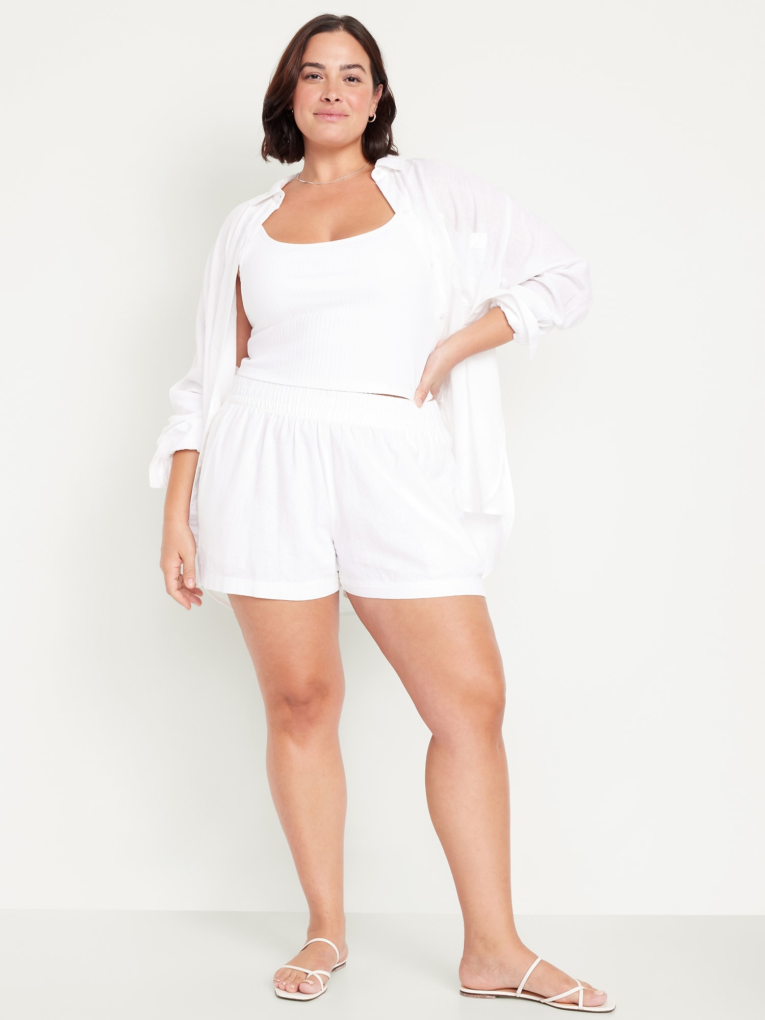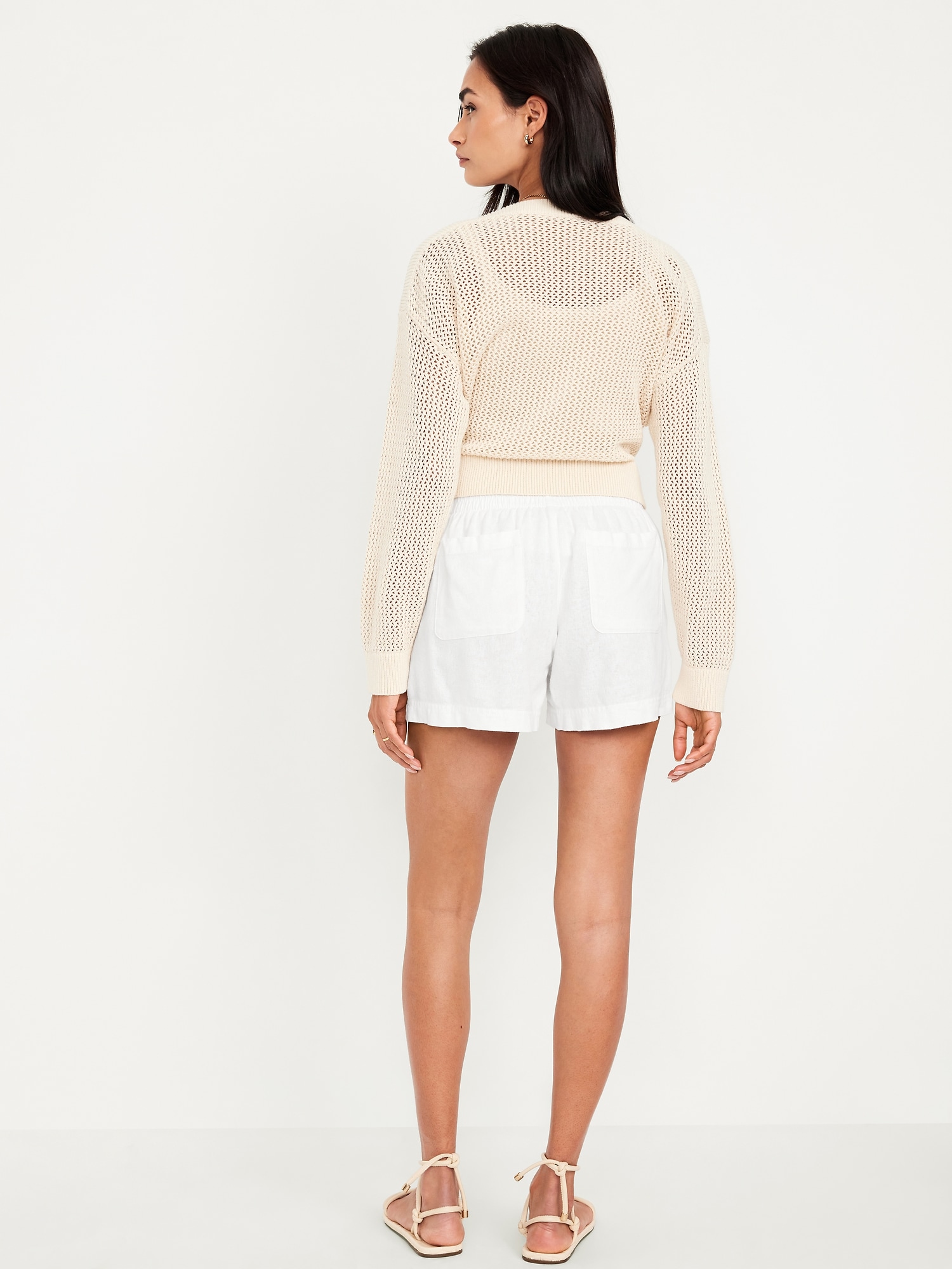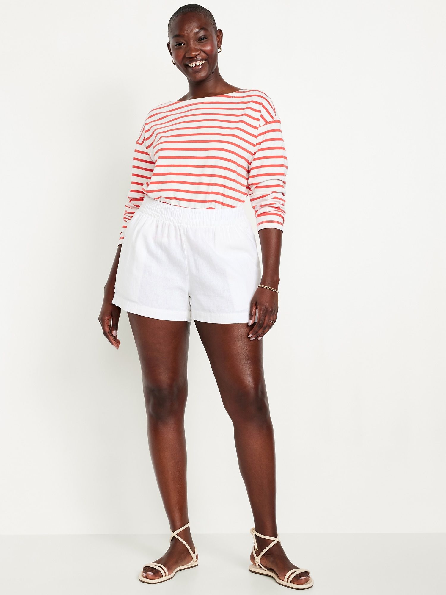 High-Waisted Linen-Blend Pull-On Shorts — 3.5-inch inseam