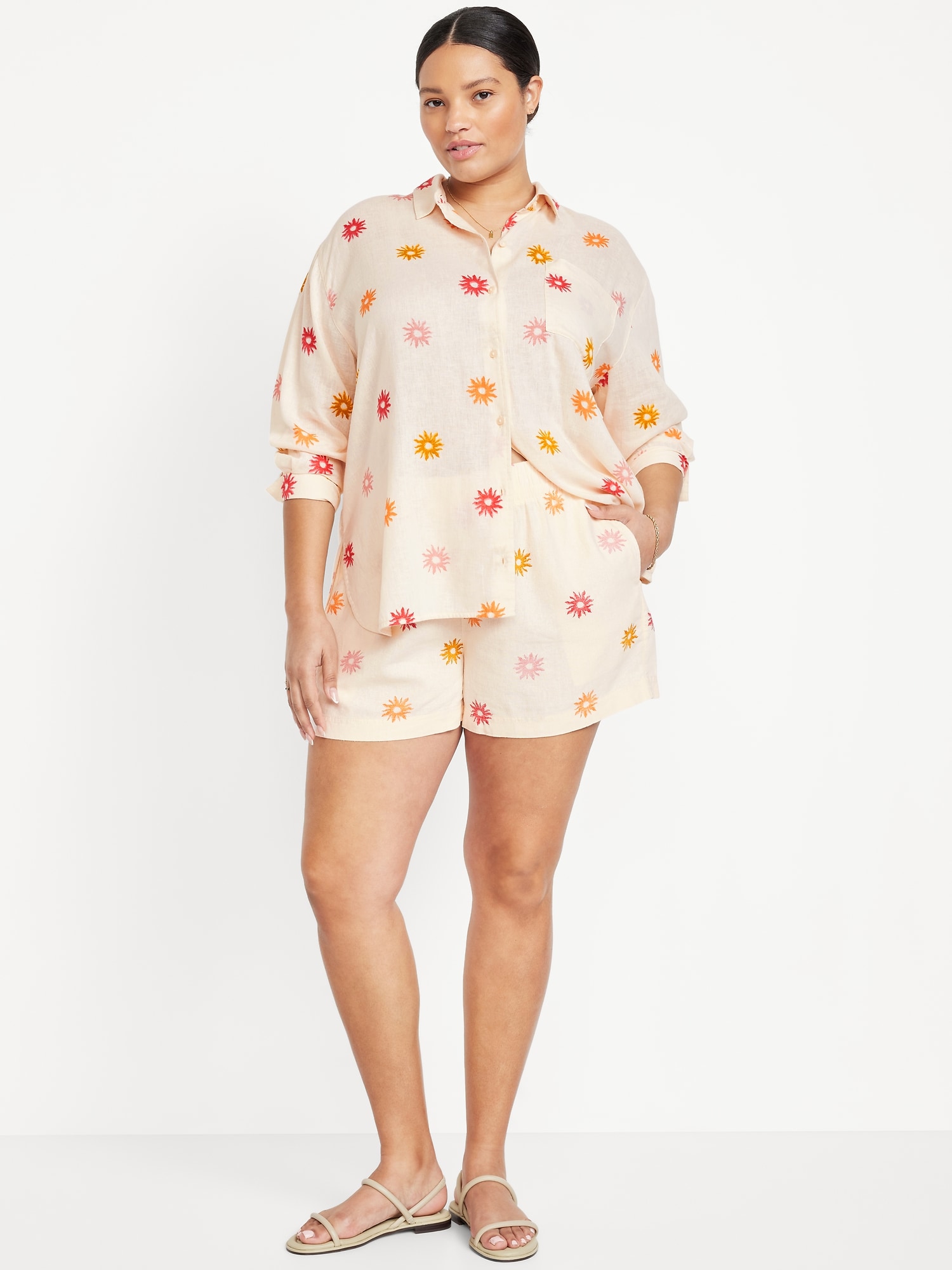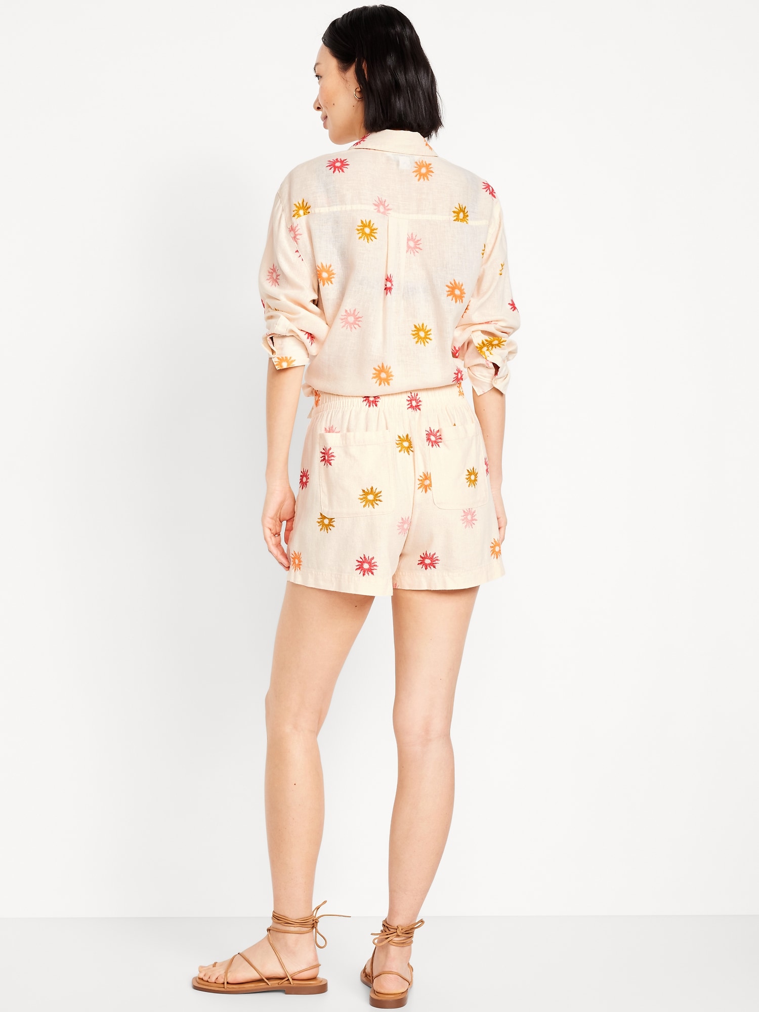 High-Waisted Linen-Blend Pull-On Shorts — 3.5-inch inseam