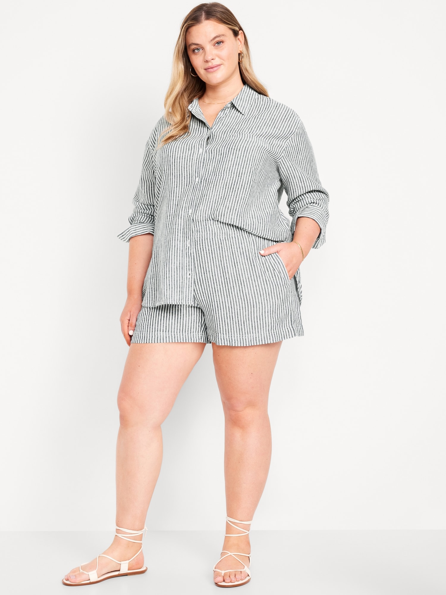 High-Waisted Linen-Blend Shorts — 3.5-inch inseam