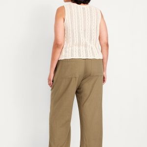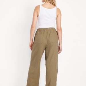 High-Waisted Linen-Blend Straight Pants: comfort elastic-drawstring waistband, side-seam pockets, back patch pockets, straight leg, easy pull-on style, #784300