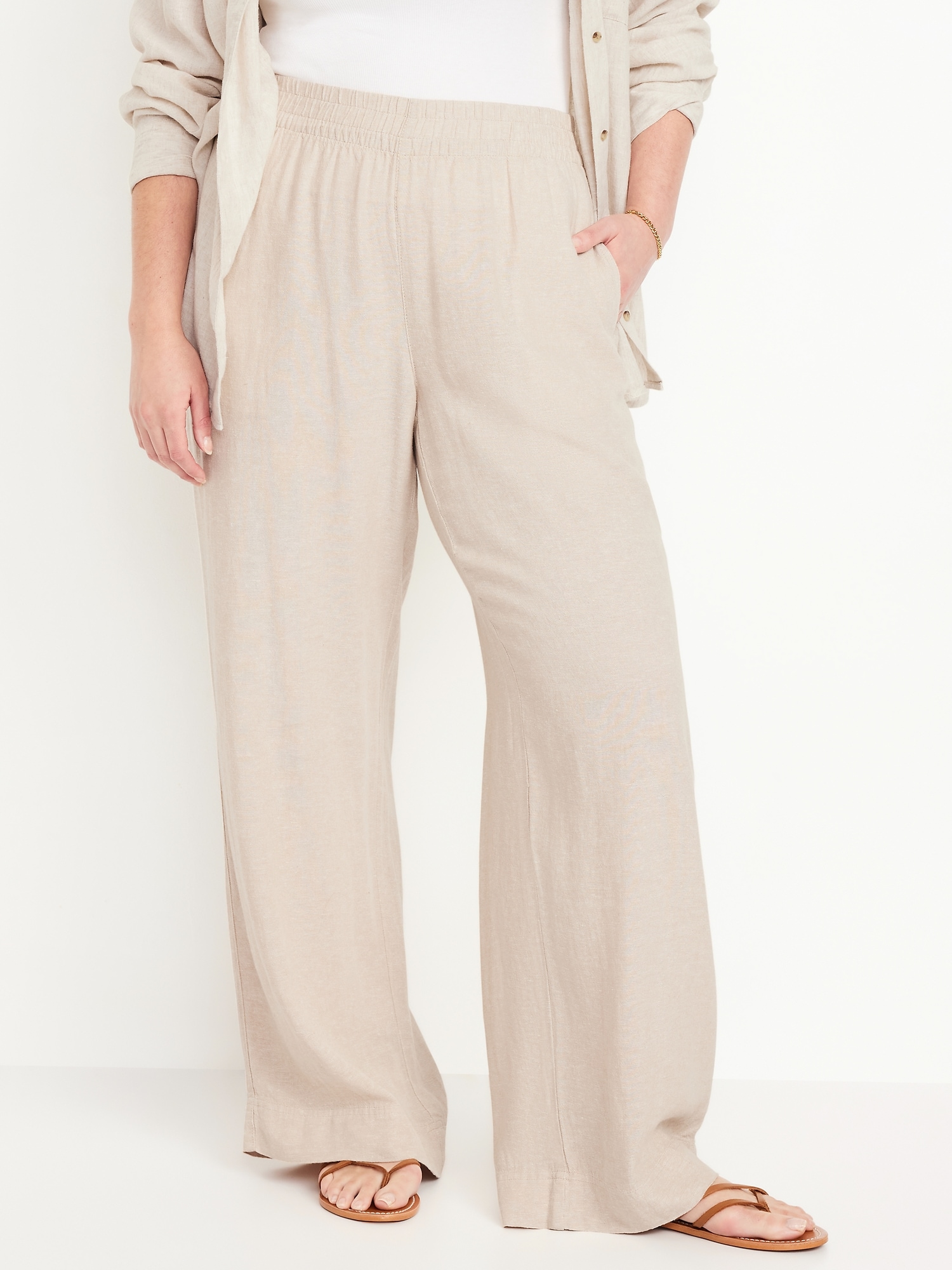 High-Waisted Linen-Blend Wide-Leg Pants: elastic-drawstring high waistband, on-seam hip pockets, super wide leg, easy pull-on style, online exclusive, #683345